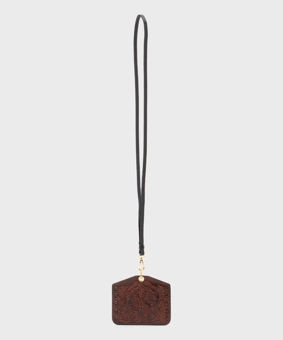 ストラップ付きのIDカードケース。使い込むほどに味の出る牛革を使用しています。