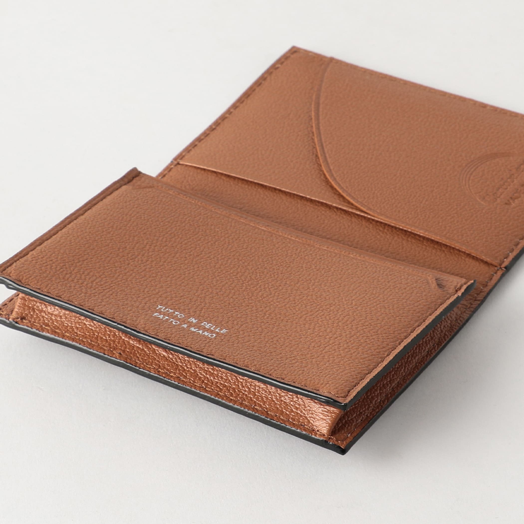 見た目はコンパクトでありながら、大きく開くマチのあるポケットに数十枚の名刺をしまうことのできる定番の名刺入れ。