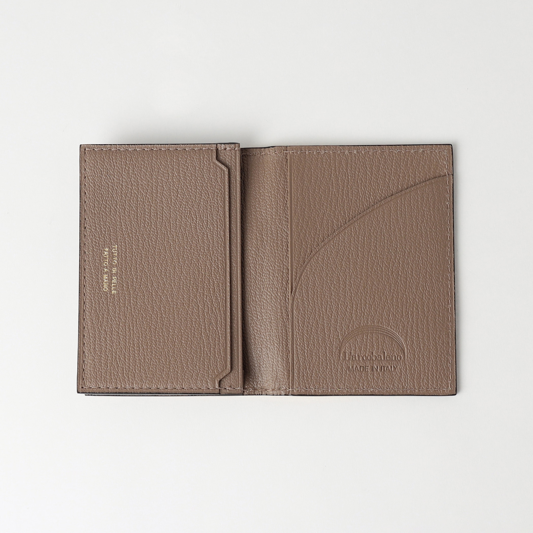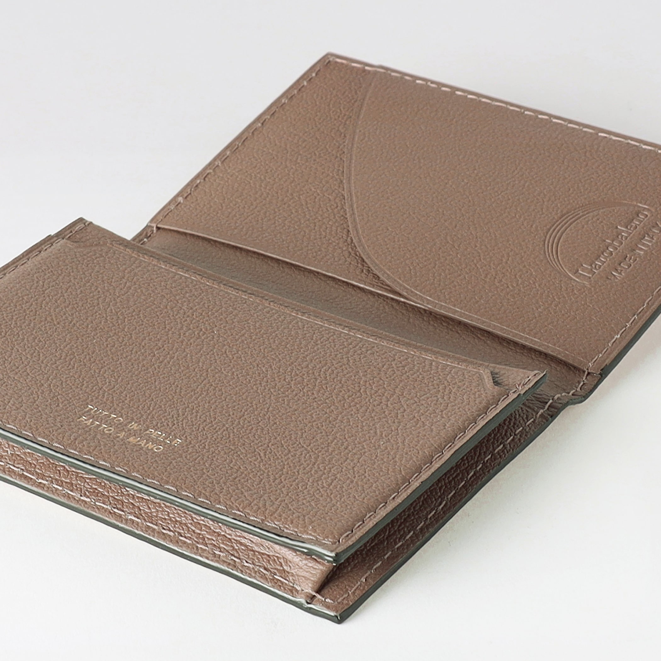 見た目はコンパクトでありながら、大きく開くマチのあるポケットに数十枚の名刺をしまうことのできる定番の名刺入れ。