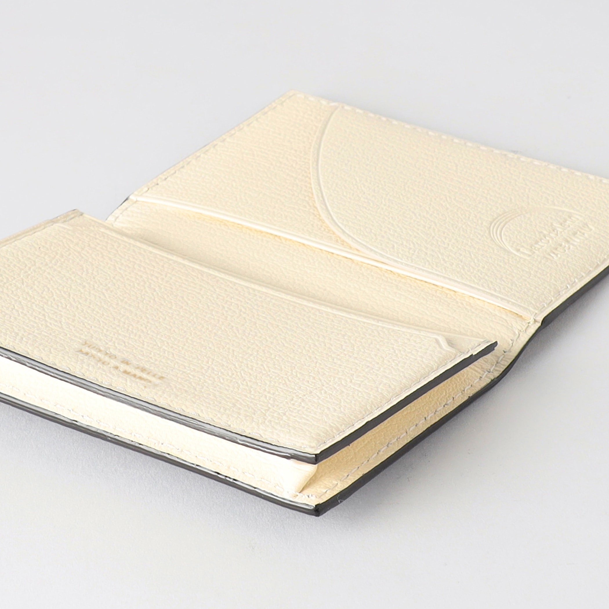 見た目はコンパクトでありながら、大きく開くマチのあるポケットに数十枚の名刺をしまうことのできる定番の名刺入れ。