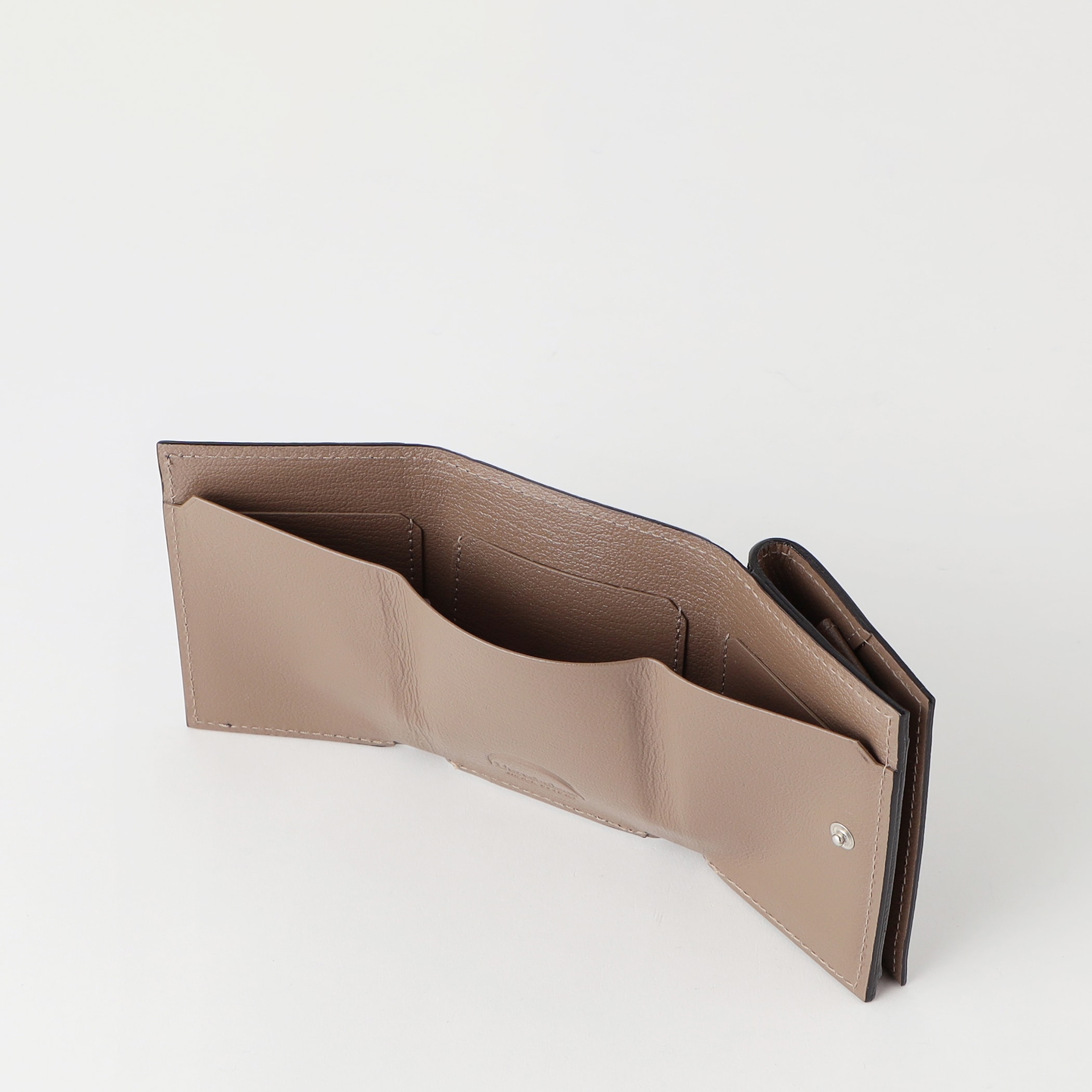 コロンとしたフォルムが愛らしいコンパクトサイズの3つ折りウォレット。