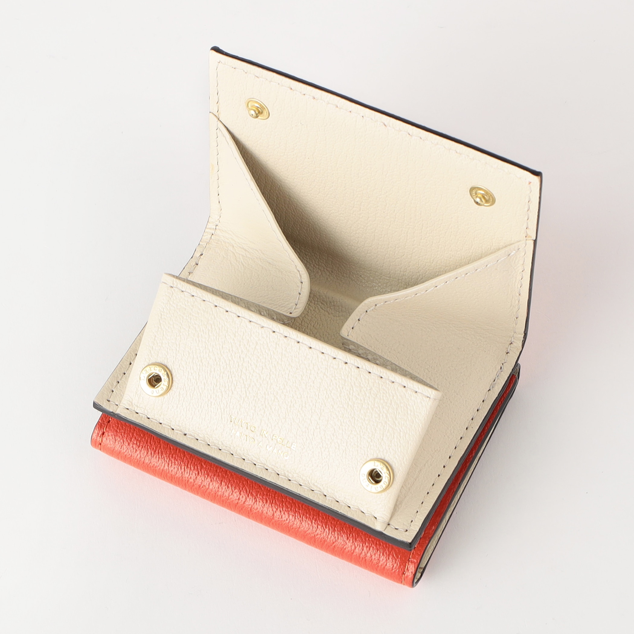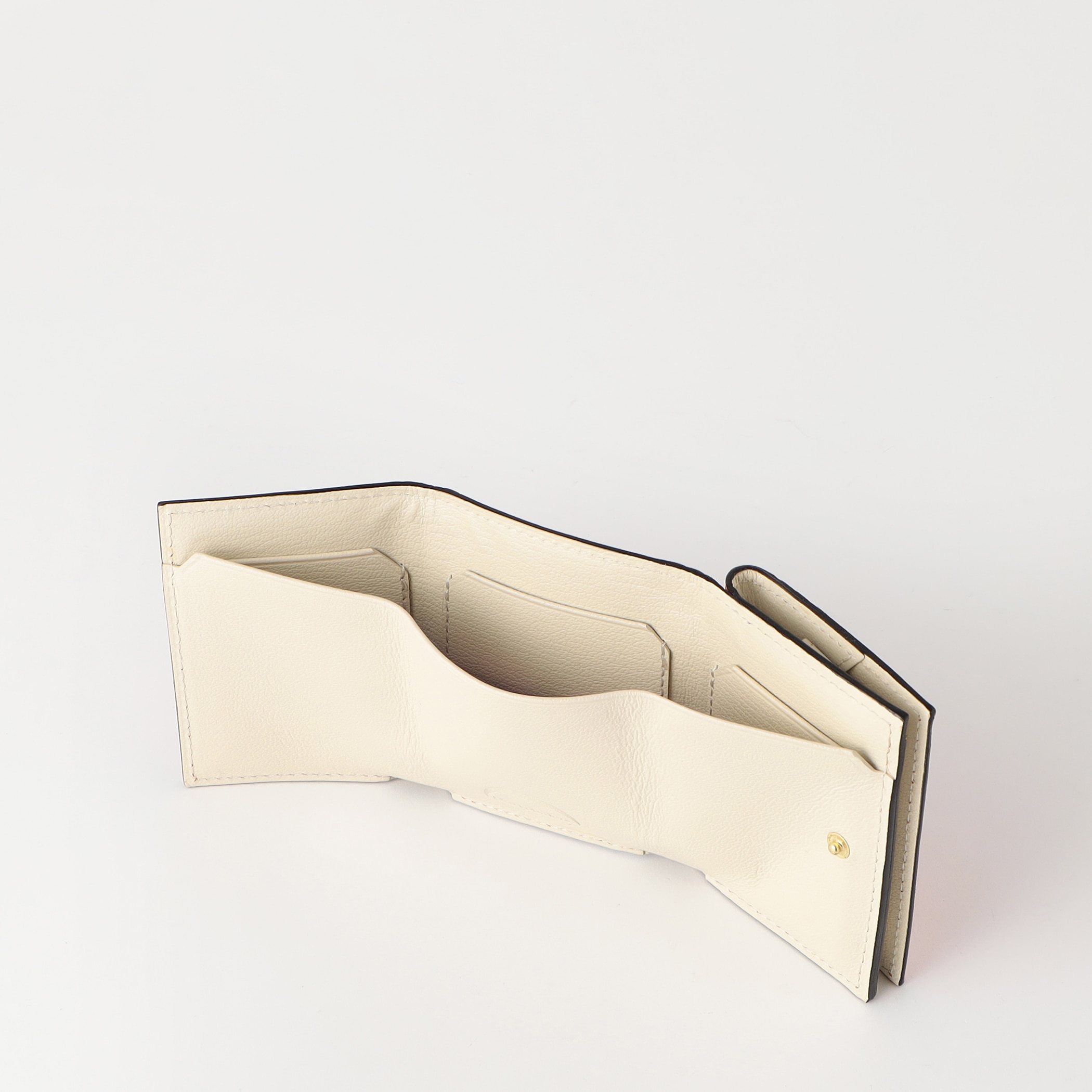 コロンとしたフォルムが愛らしいコンパクトサイズの3つ折りウォレット。