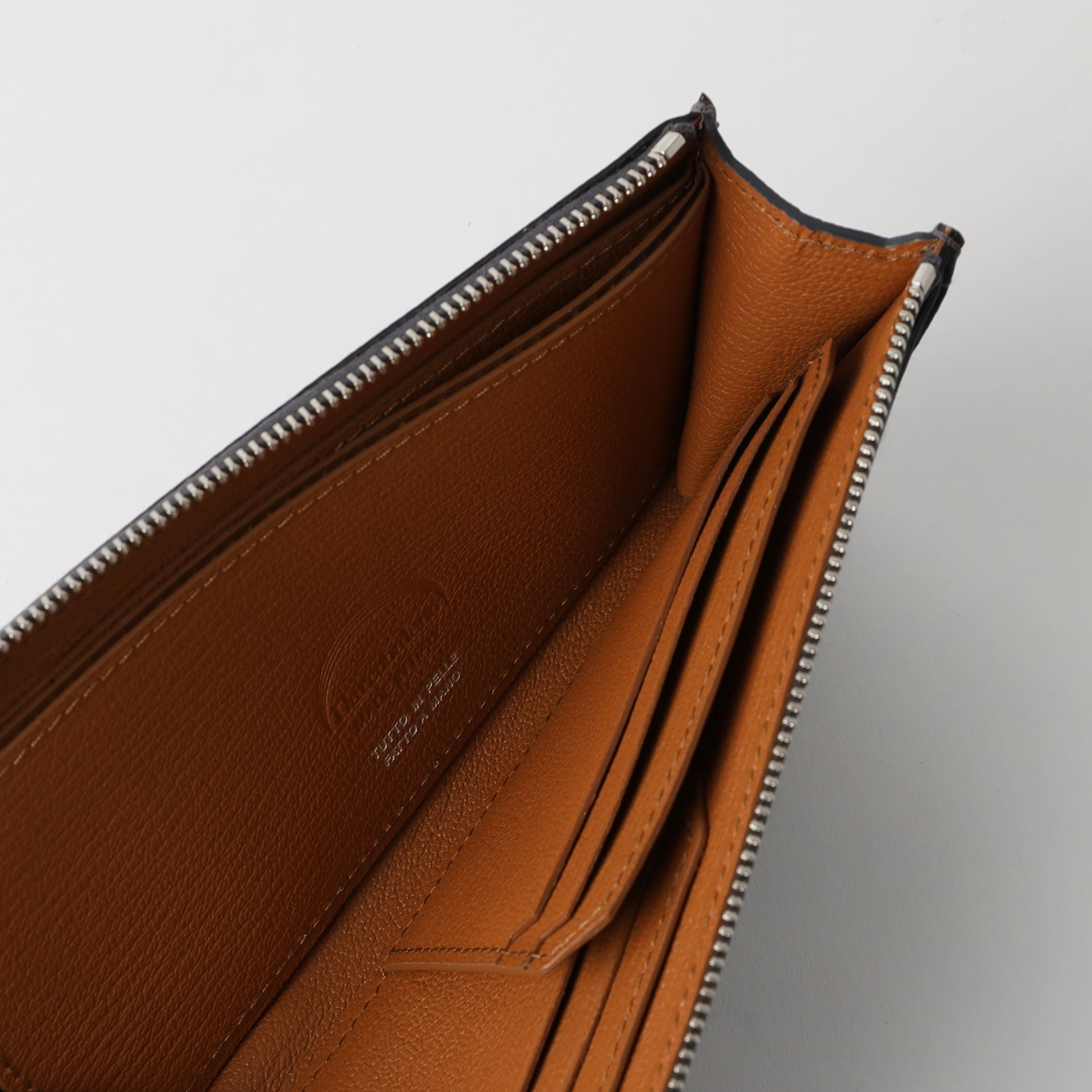 お札は折らず、カードもたっぷり、長財布の良さを残しながらも手なじみの良い大きさに仕上げました。