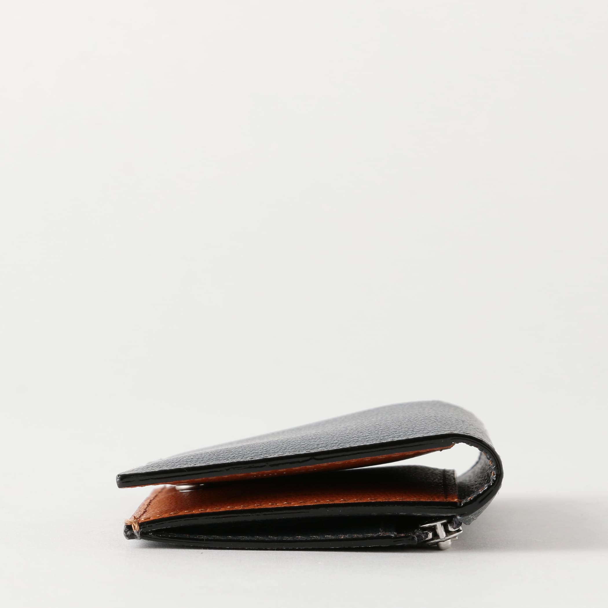 スリムでコンパクトなデザインながら、紙幣に折り目のつきづらい札室を備え、カードは外側に1枚、内側に6枚の計7枚収納可能です。