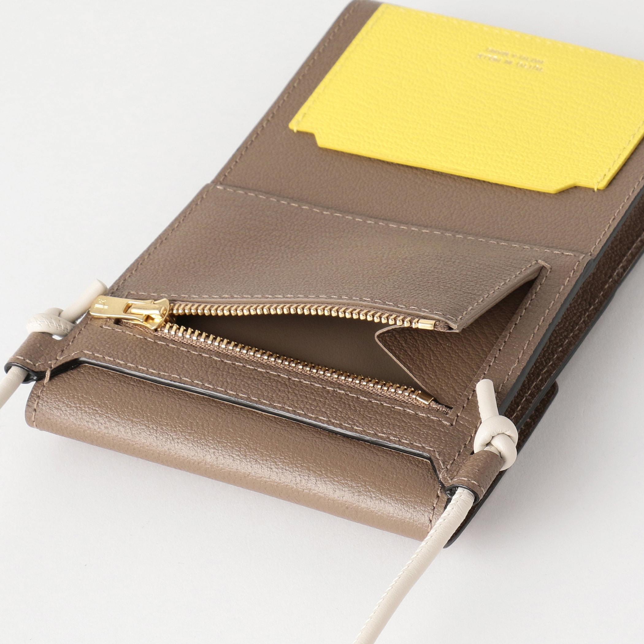 利便性はもちろん、フラップ部分から覗くバイカラーデザインがファッションのポイントとしても活躍するショルダーウォレットです。