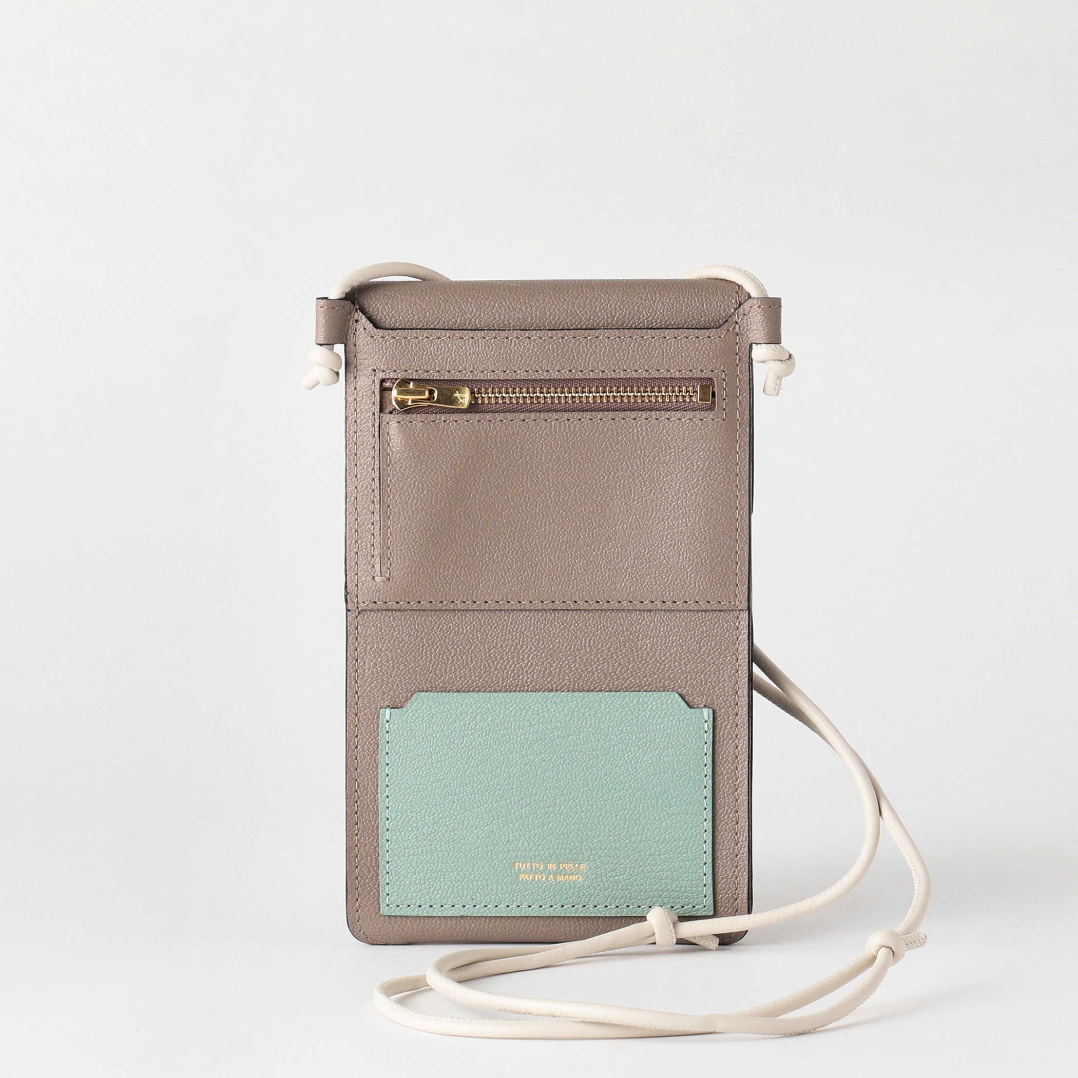 表裏合わせてカード×3、お札、コインを収納できるウォレット機能に加え、ポーチ部分にマチを設けたことで収納力も向上。