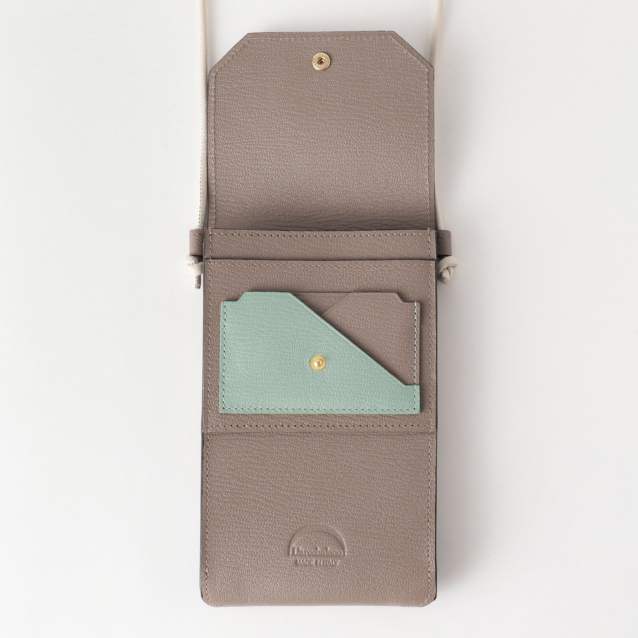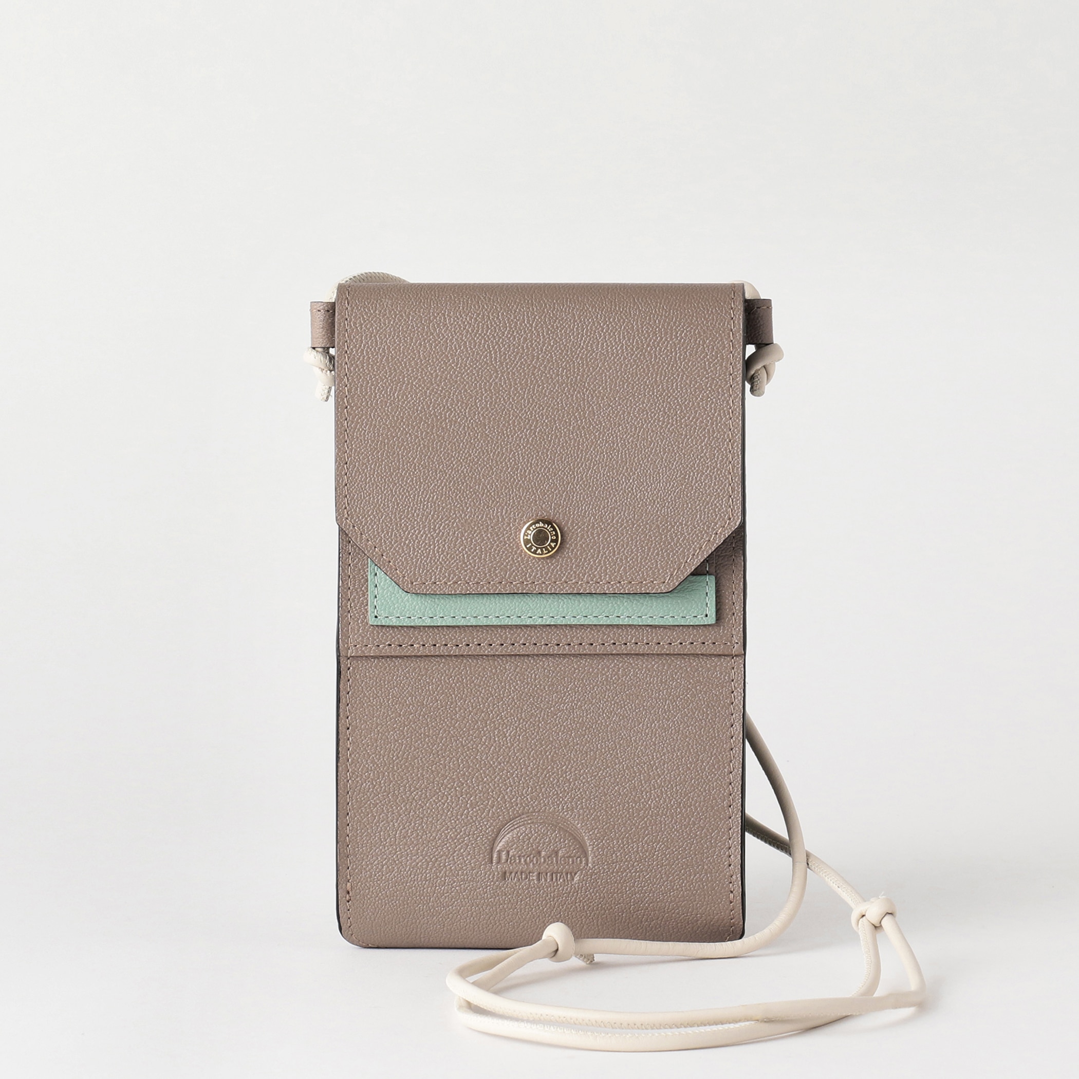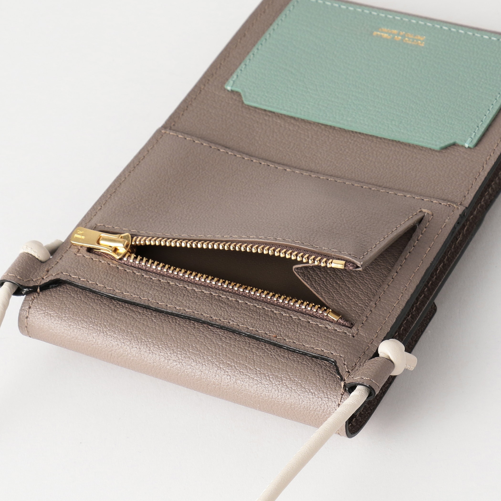 利便性はもちろん、フラップ部分から覗くバイカラーデザインがファッションのポイントとしても活躍するショルダーウォレットです。