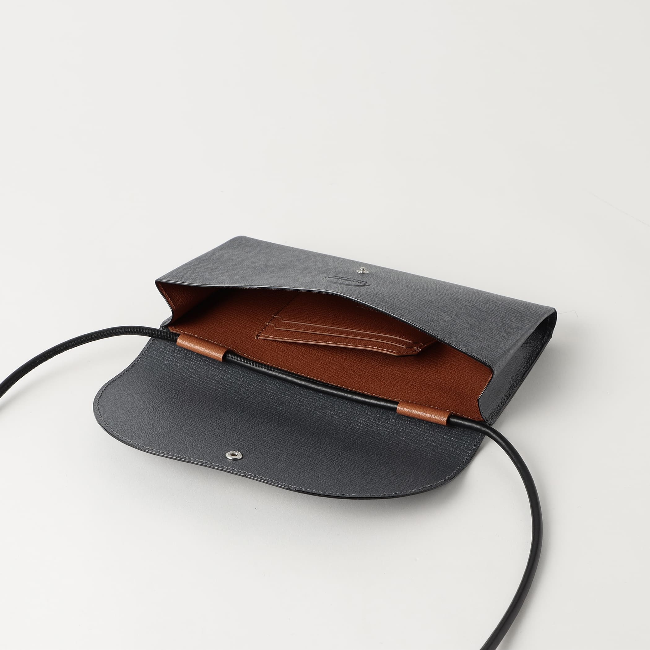 内側にはカードケースがついており、脇が開く仕様のためレシートや紙幣を挟んでおくことも可能。
