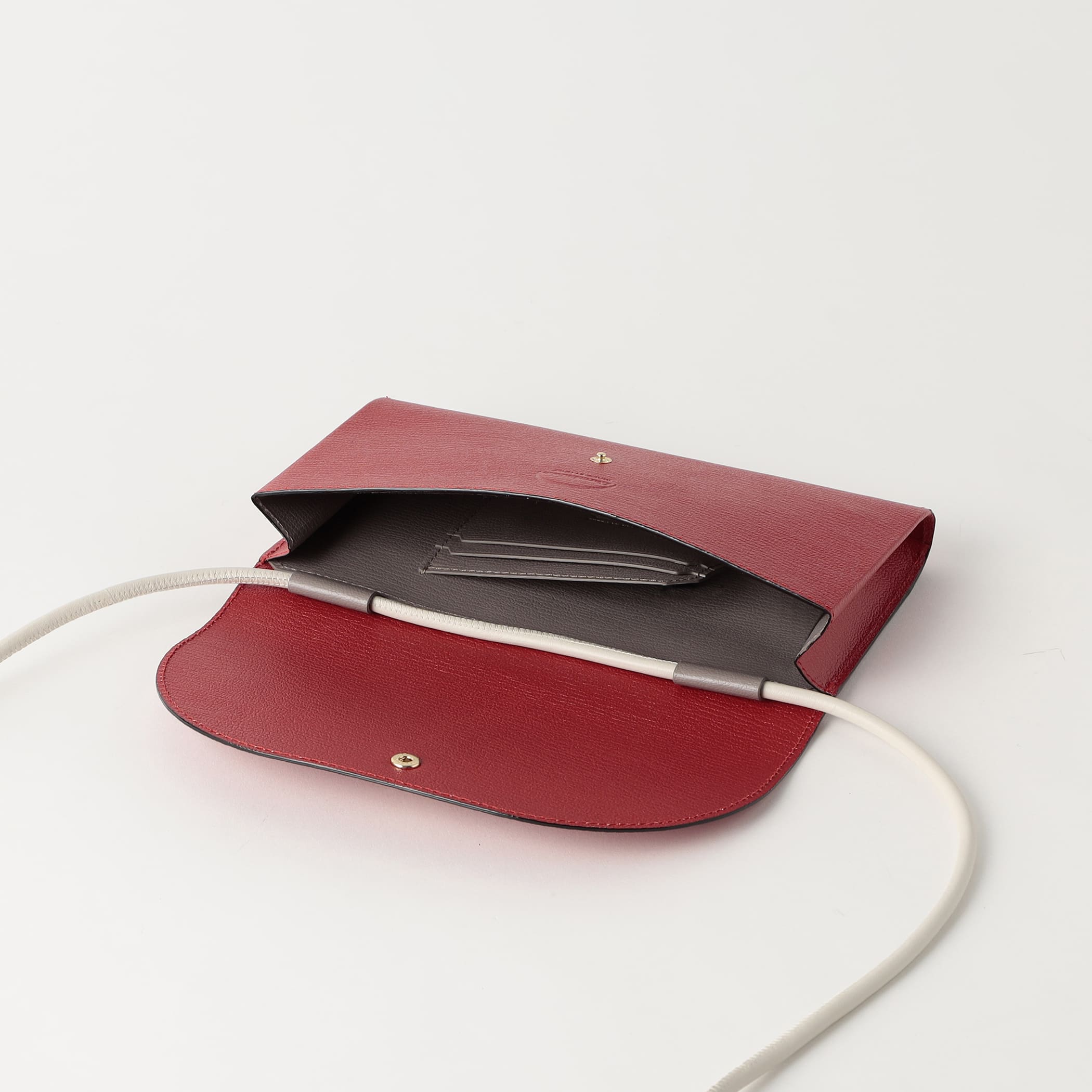 スマートウォレットシリーズとiPhone、ハンカチなどを入れておけば普段のお出かけは十分な上、袱紗(ふくさ)の入るサイズに設計しているのでクラッチバッグとして結婚式やパーティーシーンでも活躍。