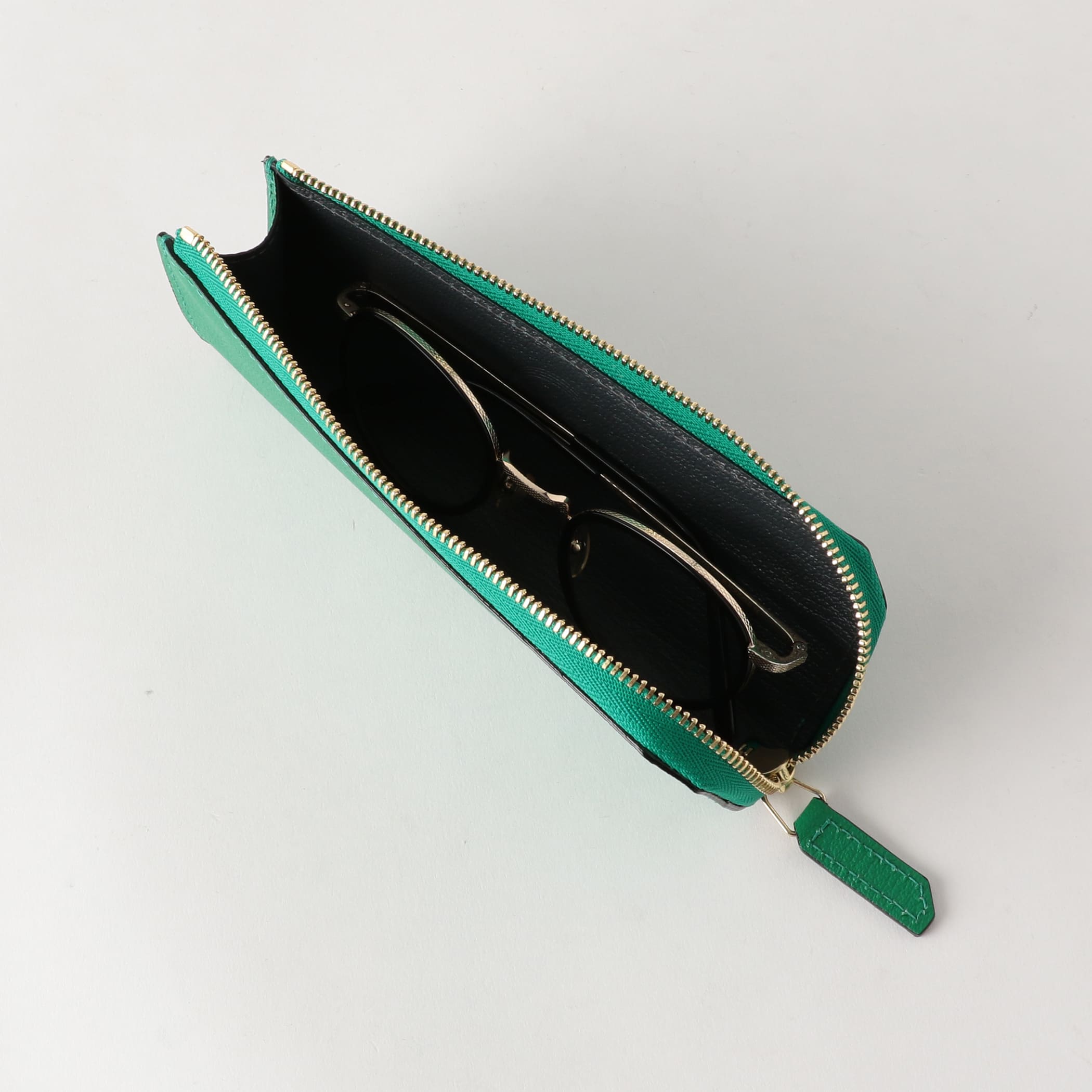 ペンが3、4本すっきりと収まり、アイウェアもすっぽりと入る、汎用性の高いサイズ感。