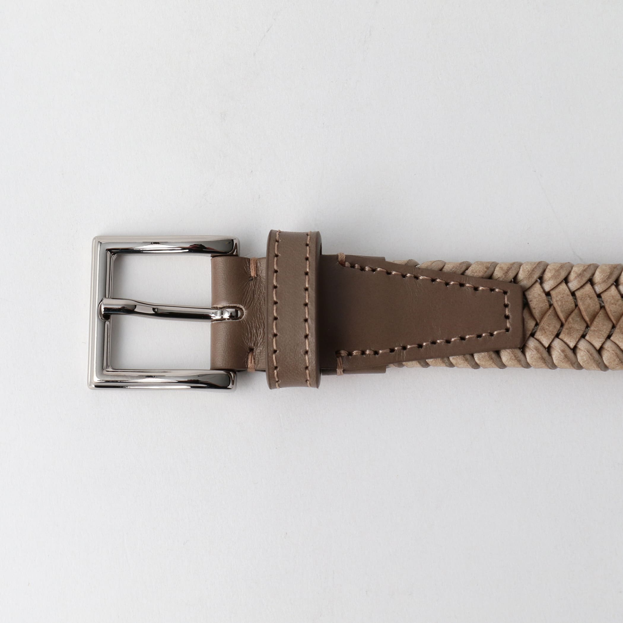 ループ、根革、剣先はシボのある牛革を用いることでカジュアル感のある印象に仕上げました。