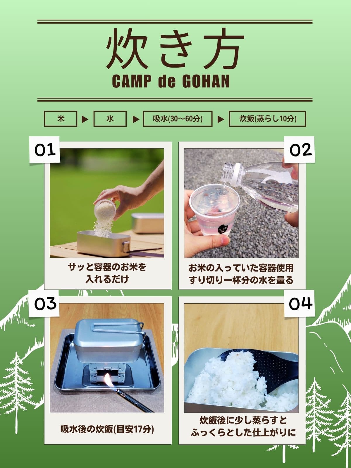 手間いらずで簡単に炊ける北海道産ななつぼし(無洗米)の小分けパックとキャンプで活躍するメスティンの限定セットです。カップ1杯のお水で研がずに炊けるため、アウトドアシーンにもピッタリです。