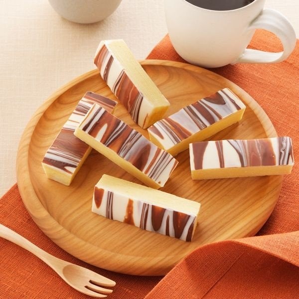 原材料: 液卵(鶏卵(国産))、砂糖(てん菜(北海道産))、小麦粉(小麦(北海道十勝産))、バター、準チョコレート(植物油脂、砂糖、全粉乳、ココアバター、その他)、植物油脂、水あめ、小麦でん粉、洋酒、オレンジペースト/乳化剤、膨張剤、香料、(一部に卵・小麦・乳成分・オレンジ・大豆を含む)