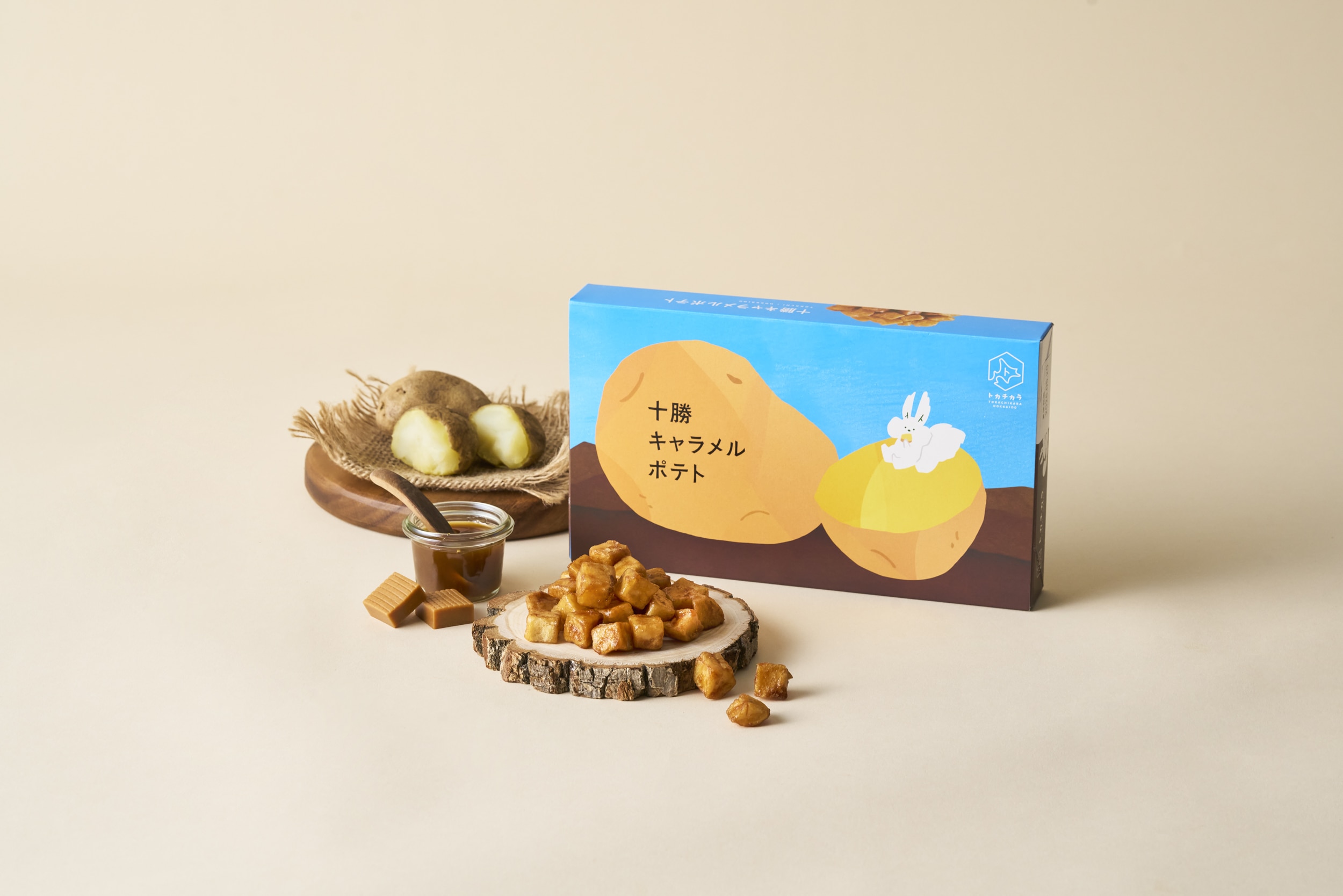 真空フライ製法でサクサクに揚げた十勝産じゃがいもを、キャラメルでコーティング。カリッと軽やか、サクサクの食感に仕上