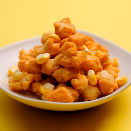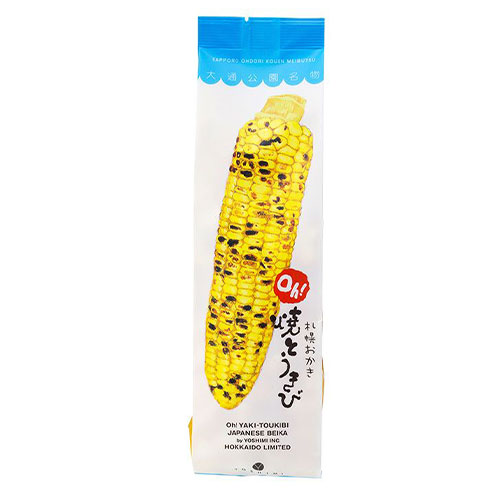 原材料: 水稲もち米(日本)、植物油脂、乾燥スイートコーン、スイートコーンパウダー、ローストコーンシーズニング、調味料(アミノ酸等)、香料、カラメル色素、甘味料(スクラロース)、酸味料、(原材料の一部にえび、小麦、大豆、鶏肉を含む)