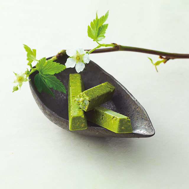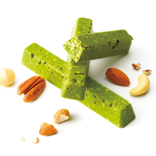 アーモンドパフ、クッキークランチを抹茶の豊かな香りが広がるチョコレートに詰めた、チョコレートバーの6本セット。