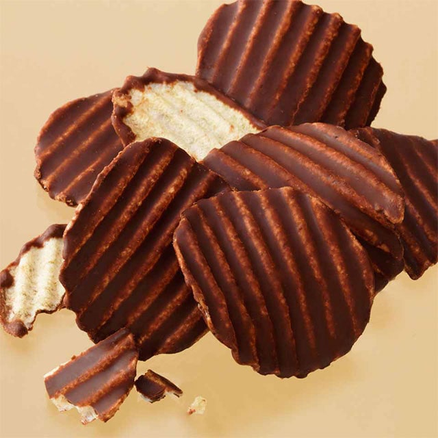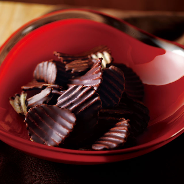 チョコレートのほろ苦さと香り、まろやかな味わいとポテトチップの塩味と食感が、互いのおいしさを引き立て合います。