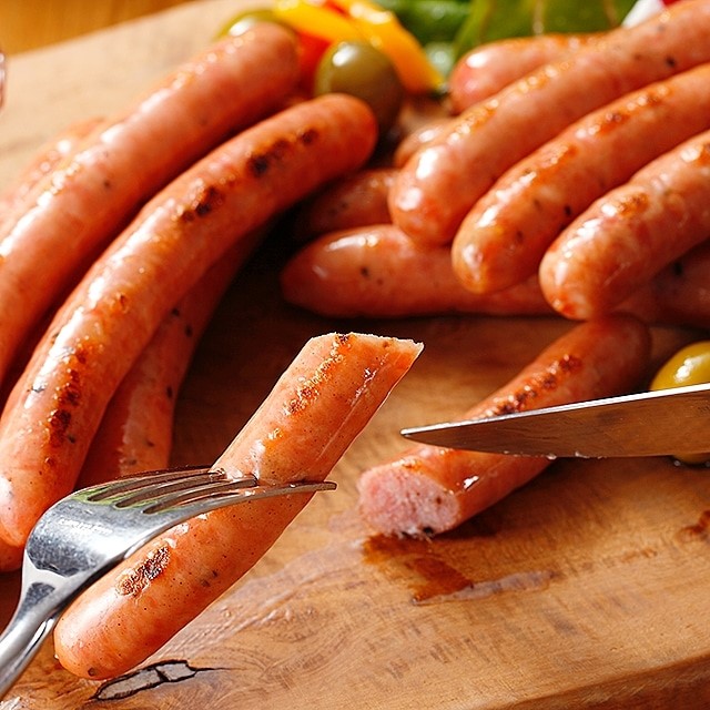 原材料: 豚肉、豚脂肪、でん粉、食塩、香辛料、えんどう豆たん白、砂糖/リン酸塩(Na)、保存料(ソルビン酸)、調味料(アミノ酸)、酸化防止剤(ビタミンC)、発色剤(亜硝酸Na)、(一部に豚肉を含む)