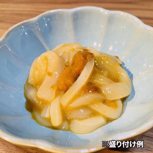 原材料: いか(国産)、うに、食塩、砂糖、還元水あめ、発酵調味料/ソルビット、調味料(アミノ酸等)、pH調整剤、増粘多糖類、甘味料(カンゾウ、ステビア)着色料(アナトー、紅麹)(一部にいか・ゼラチンを含む)