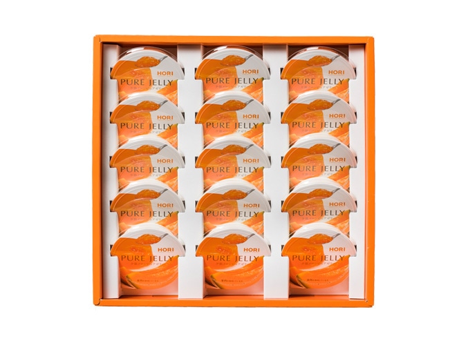 原材料: メロン(北海道夕張市産)、砂糖、洋酒、レモン果汁、脱脂粉乳/トレハロース、ゲル化剤(増粘多糖類)、香料、着色料(赤102、赤106、黄4、黄5)、(一部に乳成分を含む)