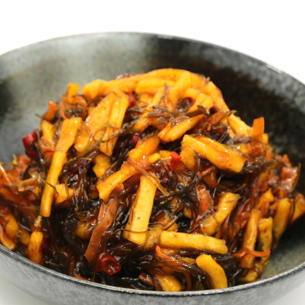 原材料: だいこん、しょうゆ、砂糖、みりん、いか加工品、こんぶ、かつお節エキス調味料、唐辛子、ソルビット、調味料(アミノ酸等)、香料、酒精、増粘多糖類、 (原材料の一部に小麦を含む)