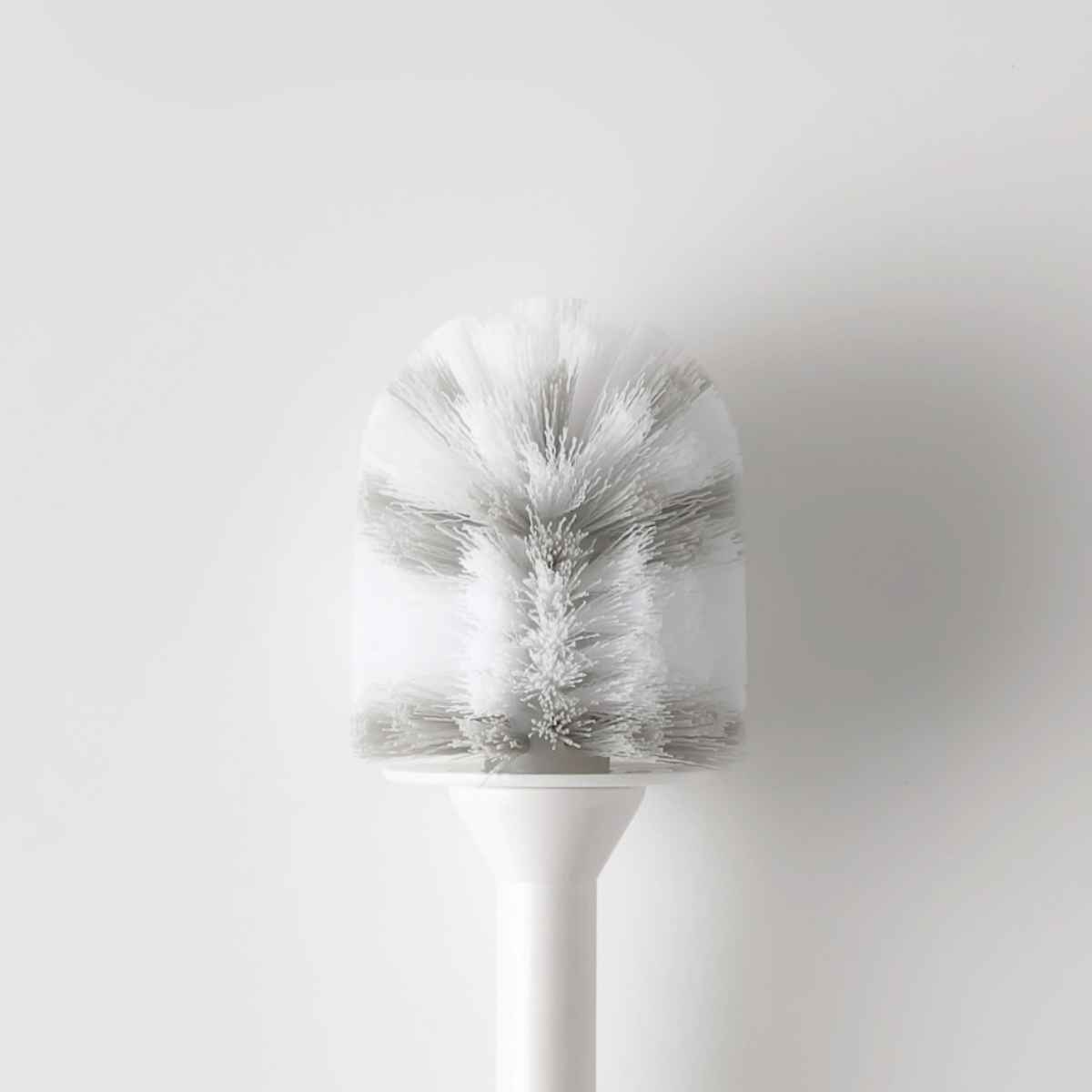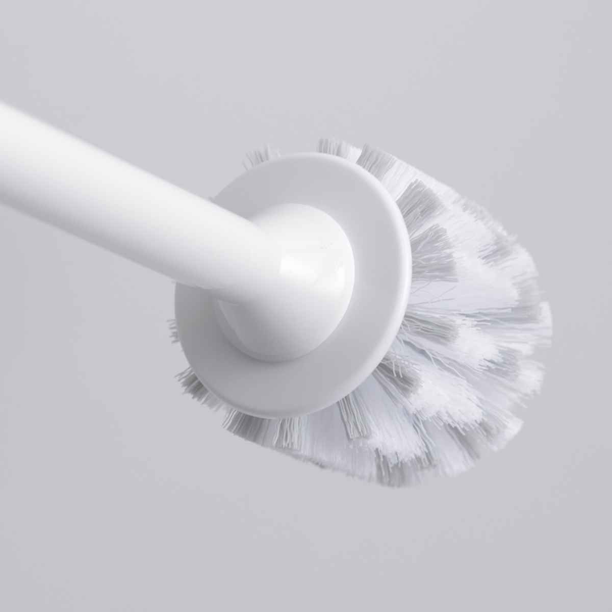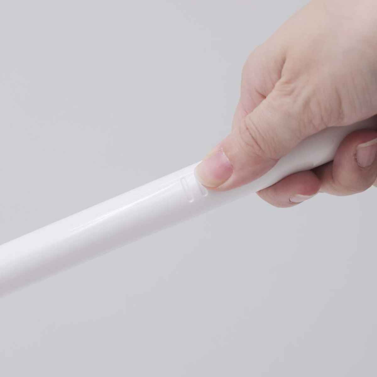 | 水はねをしにくくする ブラシと柄を繋ぐ部分にはエプロンが付いています。水はねを防ぎ手や衣類を汚れにくくしてくれます。 | 柄にはすべり止め付き 柄の持ち手側にはすべり止め加工が施されています。便器を擦っている時にブラシを落としにくいです。 |