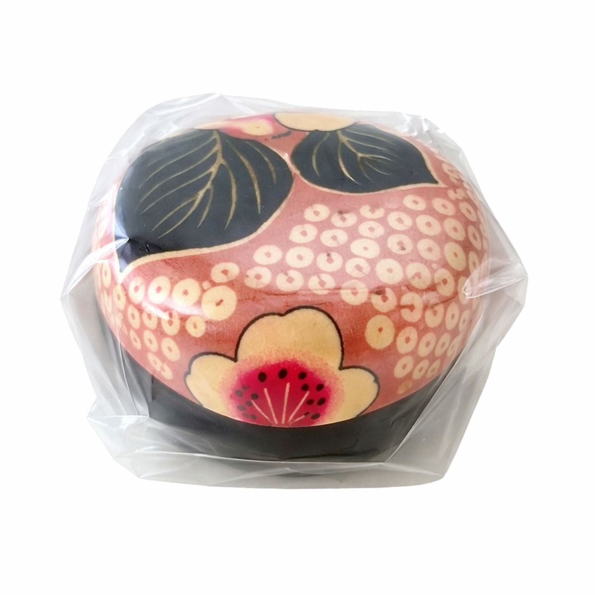 まるで着物のような上品な和柄が美しい、樹脂製の棗です。茶器の一種である「棗(なつめ)」は、抹茶を入れるのに用いる道具で、温度や湿度の変化による抹茶の劣化を防ぎます。