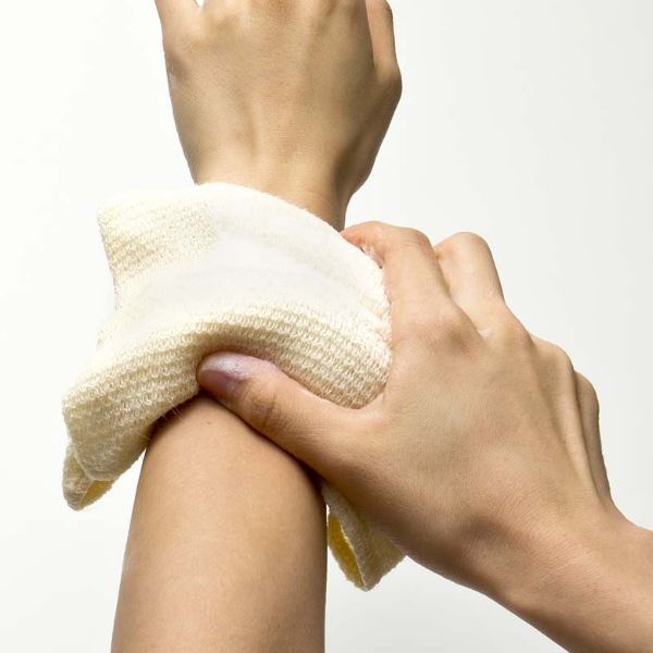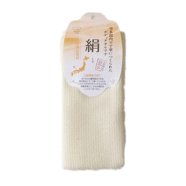 ●古くからの織物産地である泉州地方にて、丁寧に作られた天然絹100%のボディタオルです。
