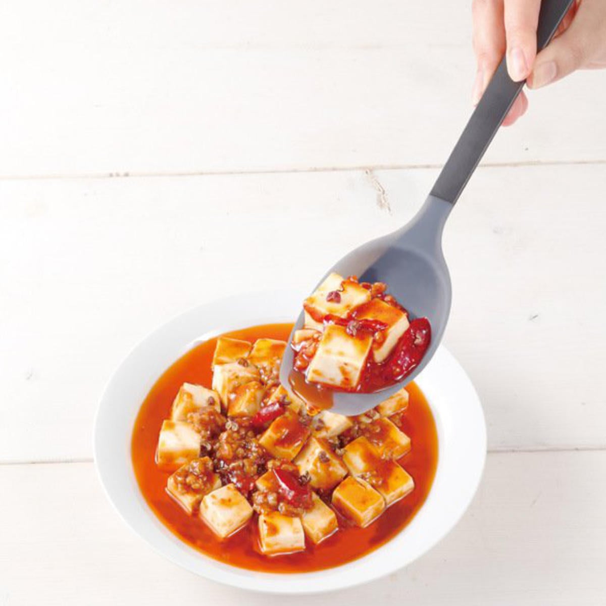 スプーン形状なので、汁気があるものもたっぷりすくえます。炒め物から盛り付けまで、手早く仕上げることができます。