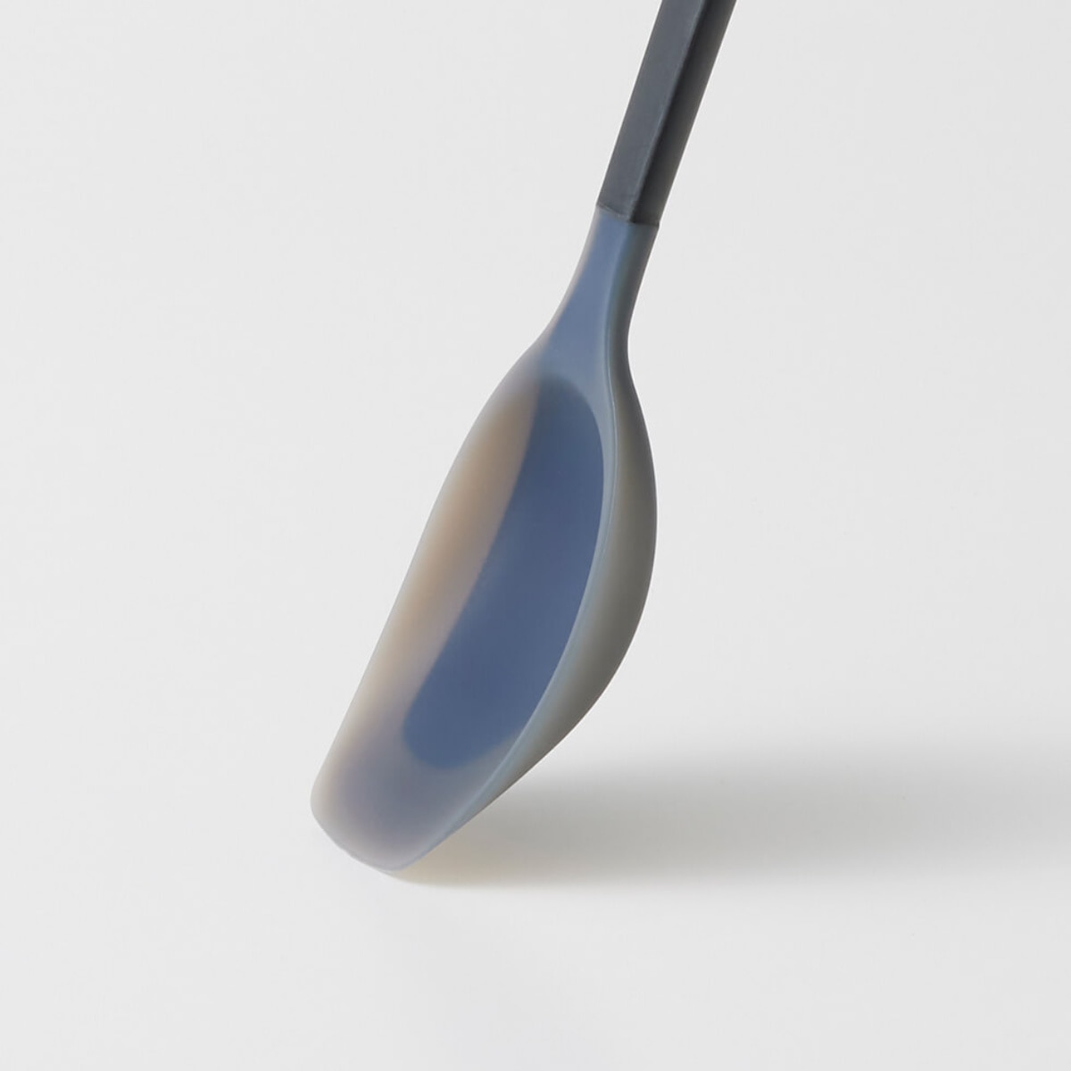 フライパンを傷つけにくい、トライアングリップシリーズのシリコーン製調理スプーンです。炒める・すくう・かき集める・盛りつけるがこれ1本でできる万能スプーンです。鍋やフライパンにフィットし、スクレーパーのように残さずきれいにすくえます。