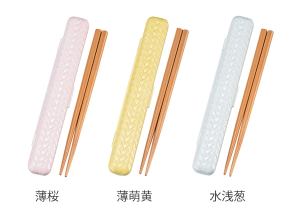 ●伝統ある風合いが美しく、小粋なデザインで人気のあじろシリーズを、ふんわりパステルカラーで優しい雰囲気にアレンジした、女性にピッタリのお箸と箸箱のセットです。