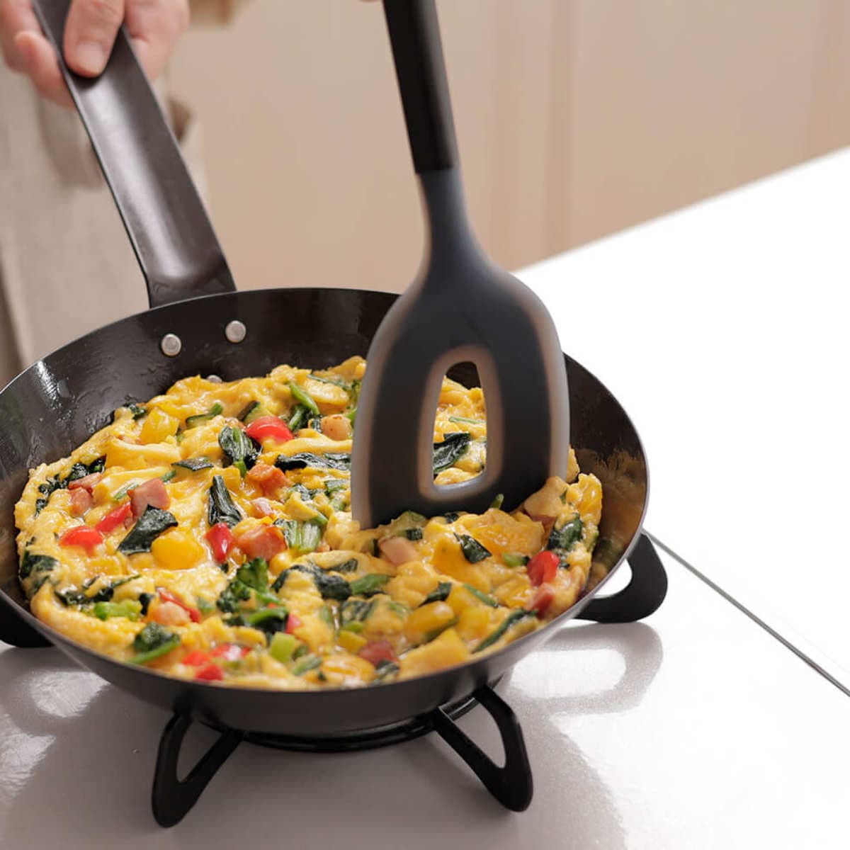 ●野菜やチャーハンを炒めたり、お好み焼・パンケーキの切り分け、ハンバーグ・ステーキを返すなど、さまざまな用途でお使いいただけるので便利です。