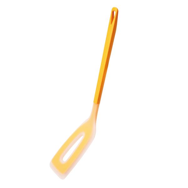 フライパンを傷つけにくい、トライアングリップシリーズのシリコーン製ターナーです。柔らかくしなる薄い先端が食材の下にスッと入り込み、形を崩さずきれいに返せます。