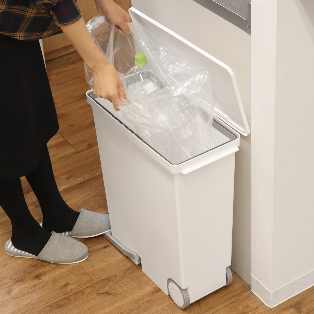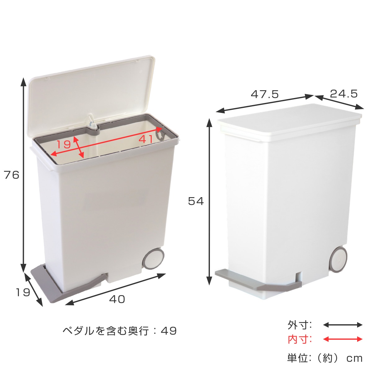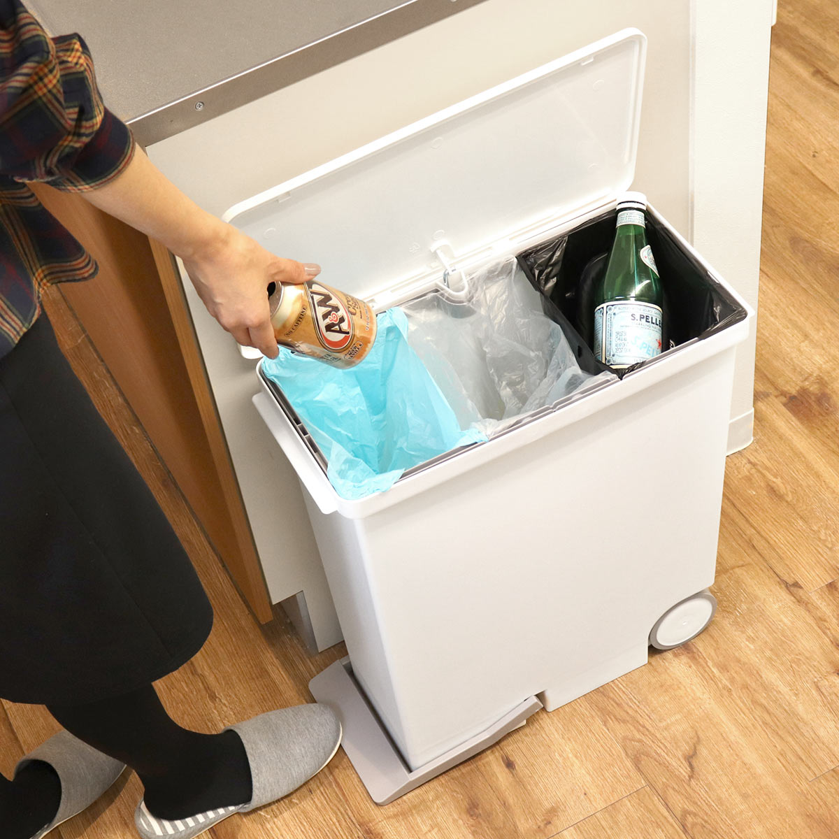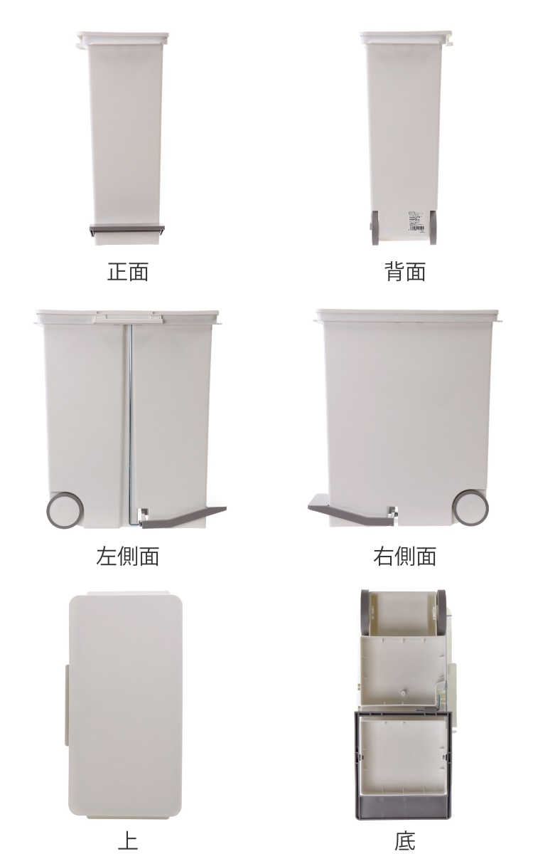 | 材質 | 本体・フタ・袋止め・キャスター:ポリプロピレン ペダル:ABS樹脂 シャフト:スチール |