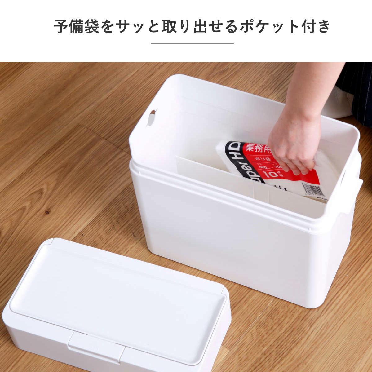 材質本体・袋止め・ふた・ふた枠・スイッチ:ポリプロピレン