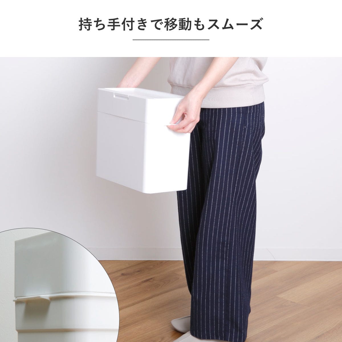 本体に持ち手が付いているので、持ち運びや移動もスムーズに行えます。ゴミ捨てやお掃除の際も負担が少なく、使い勝手のよさも魅力です。
