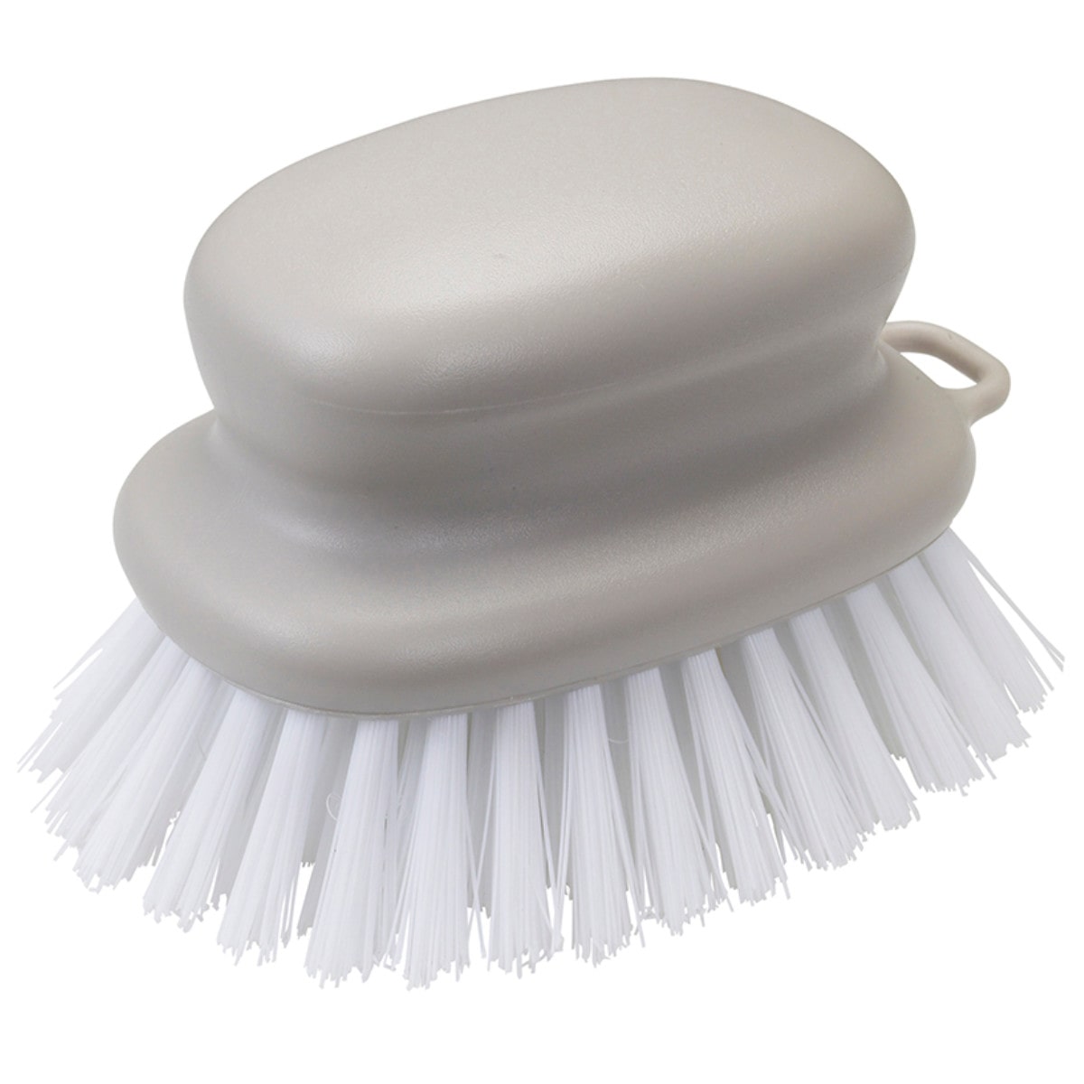 握りやすく、力の入れやすい形のお掃除ブラシです。凸凹した広い床面をゴシゴシと洗えます。先端が広がったブラシなので、壁ぎわやスミにもしっかり届きます。