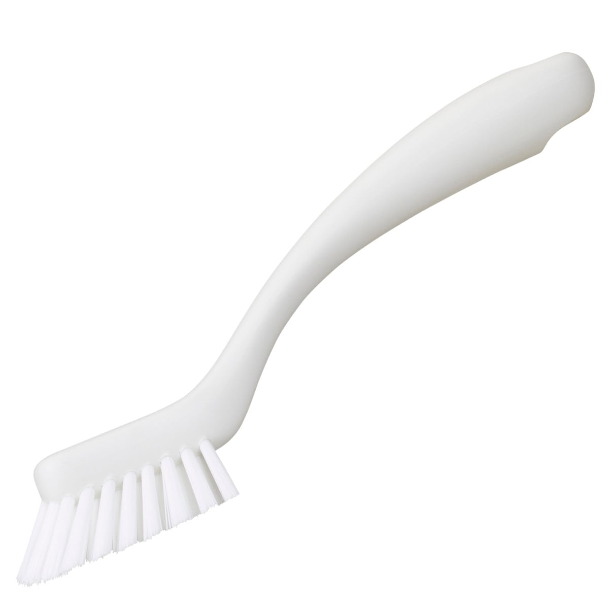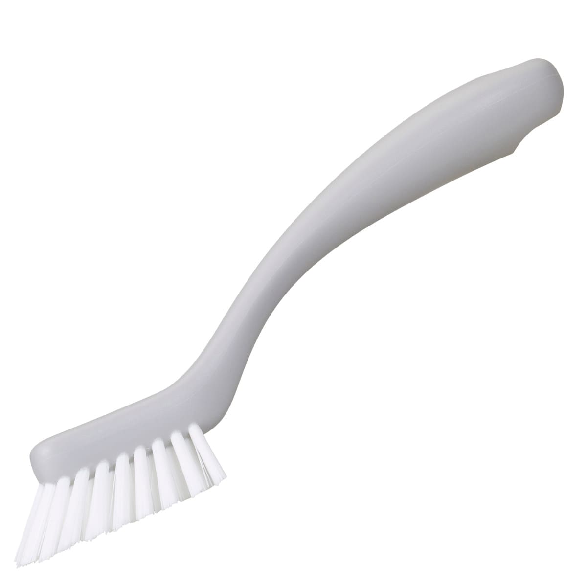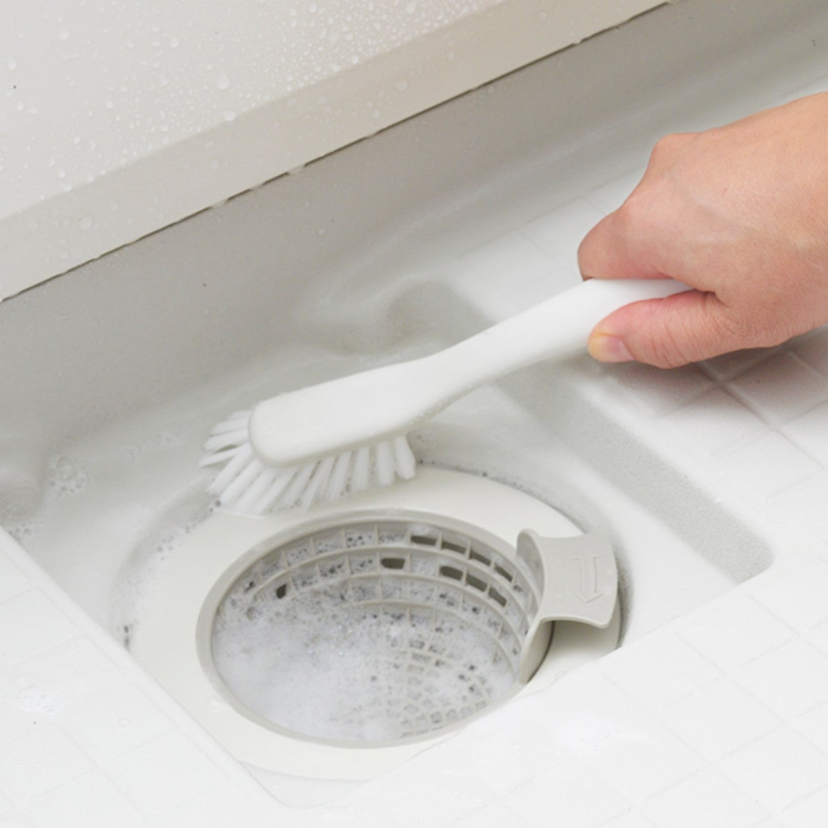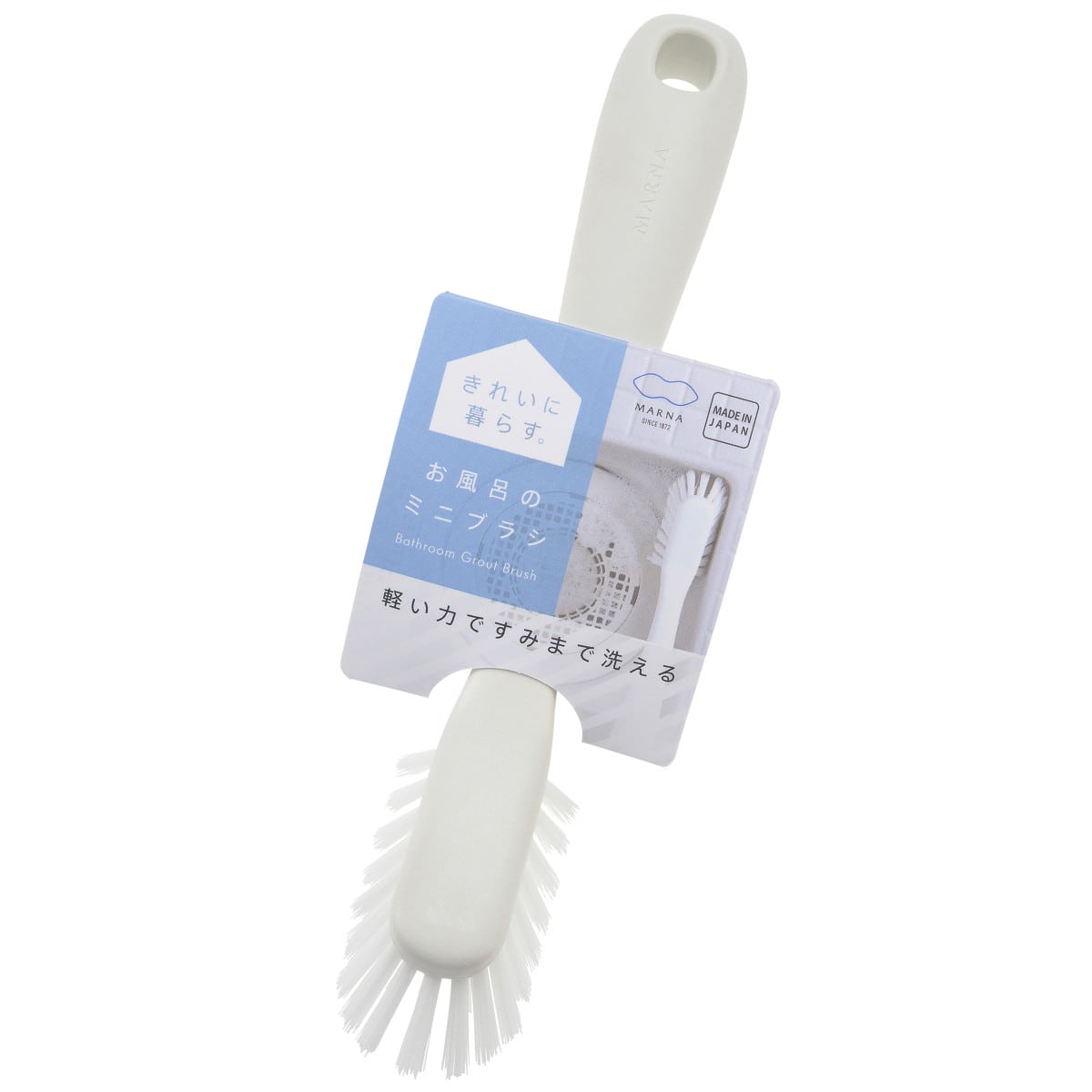 握りやすく、力の入れやすい形のミニブラシです。お風呂の細かい場所や排水口の掃除に最適です。ブラシの先端が広がっているので、角やスミの汚れをしっかり落とします。