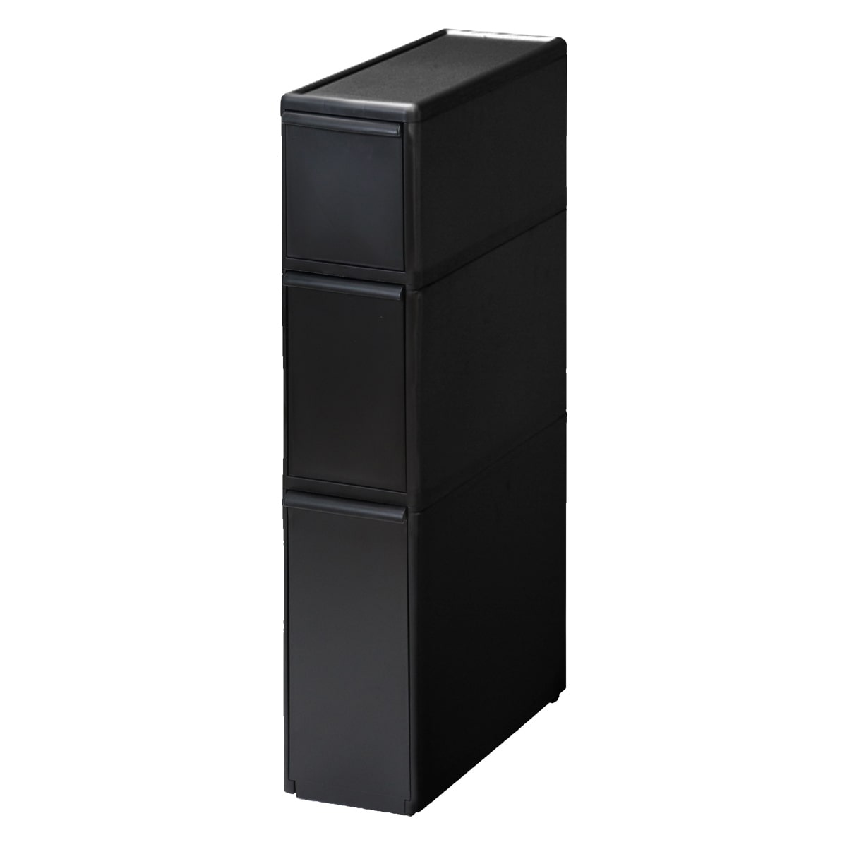 ちょっとしたすき間で使える引き出しタイプのスリムなストッカーです。幅17cmとスリムながら奥行きが46.5cmあるので収納力は抜群です。透け感がないストッカーは、生活感の出る調味料や洗剤のストックなどを入れても気になりません。