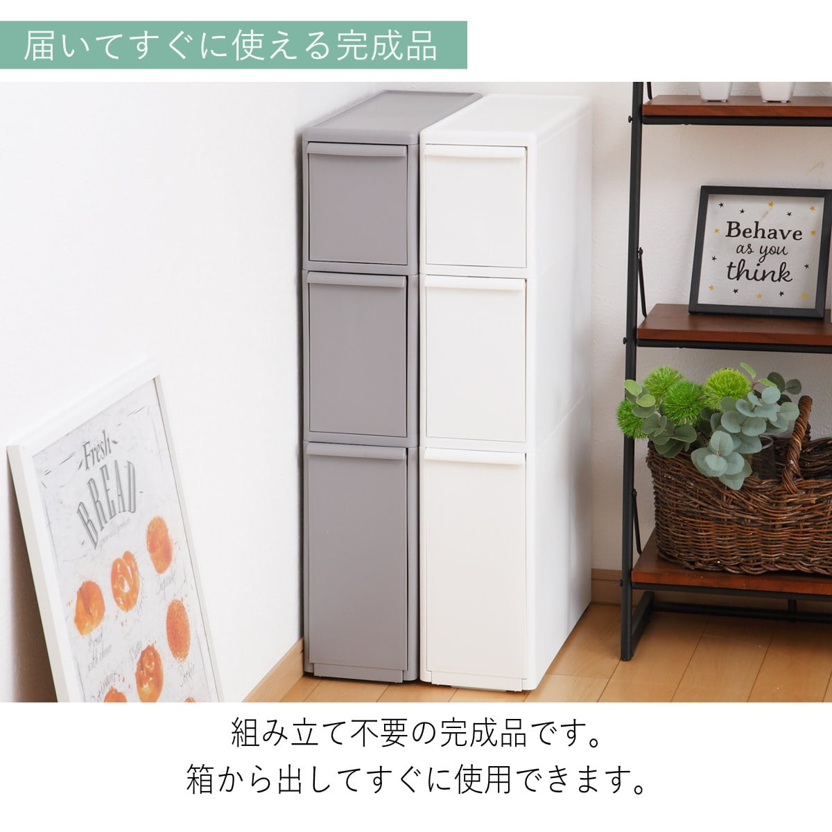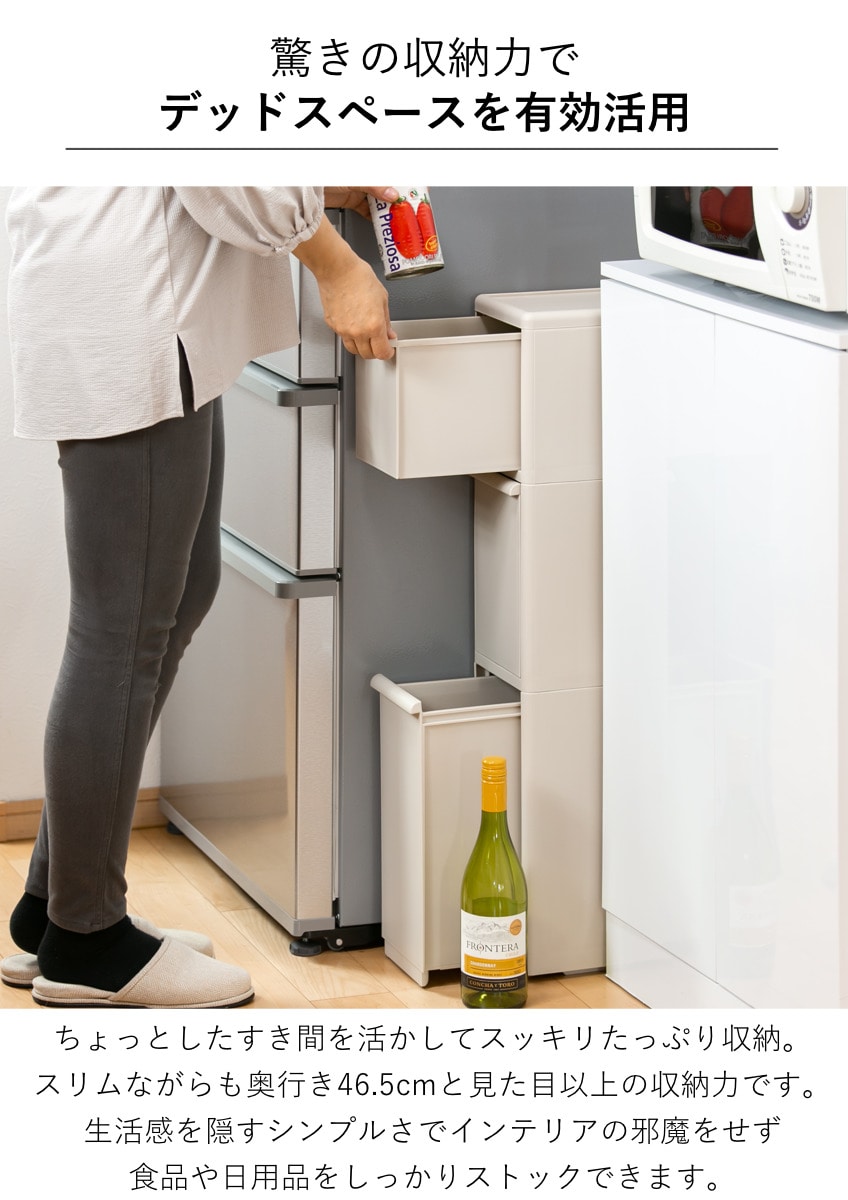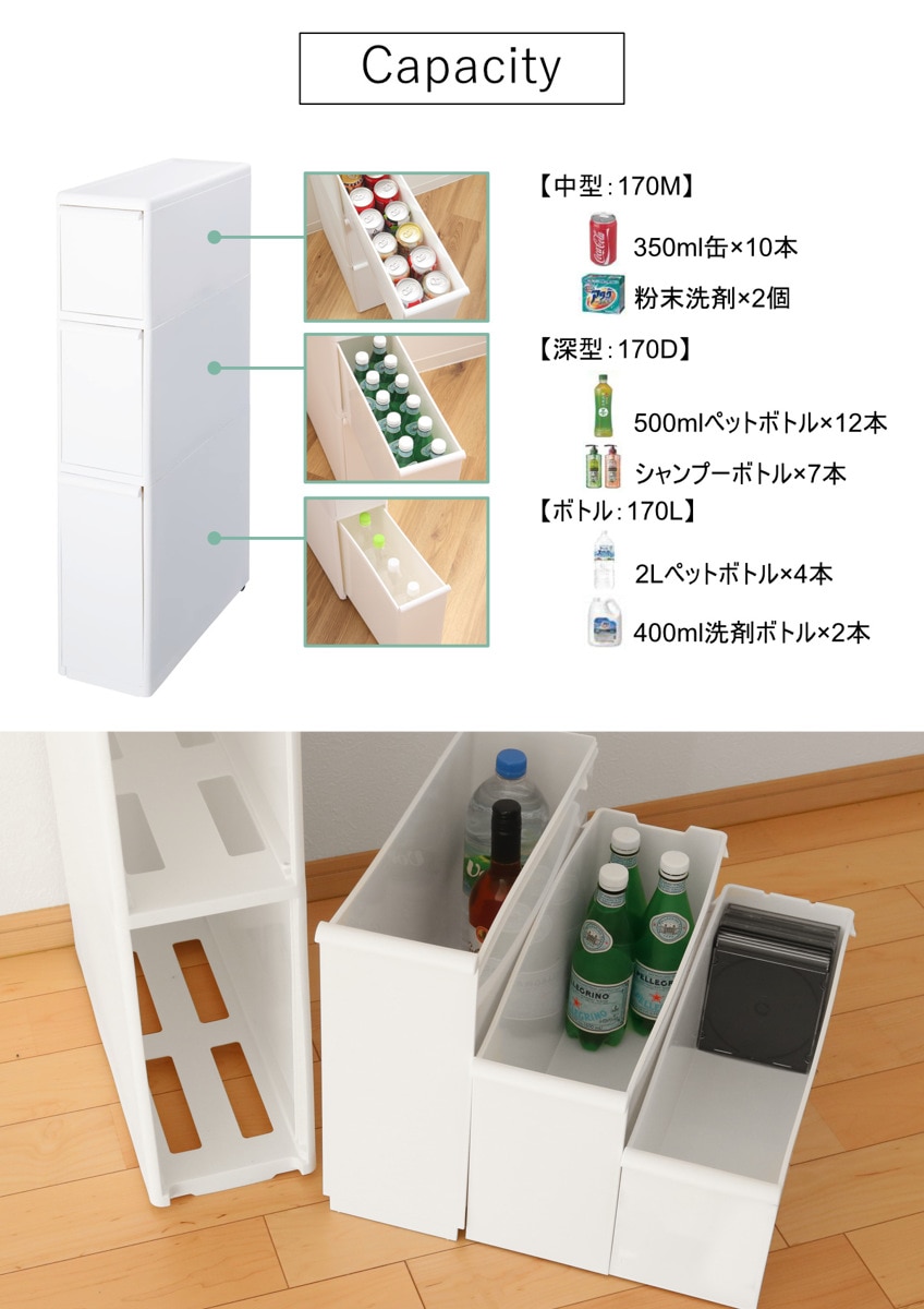 | 引き出し1段あたり耐荷重 | 中型・深型:約 5kg ボトル:約 10kg |