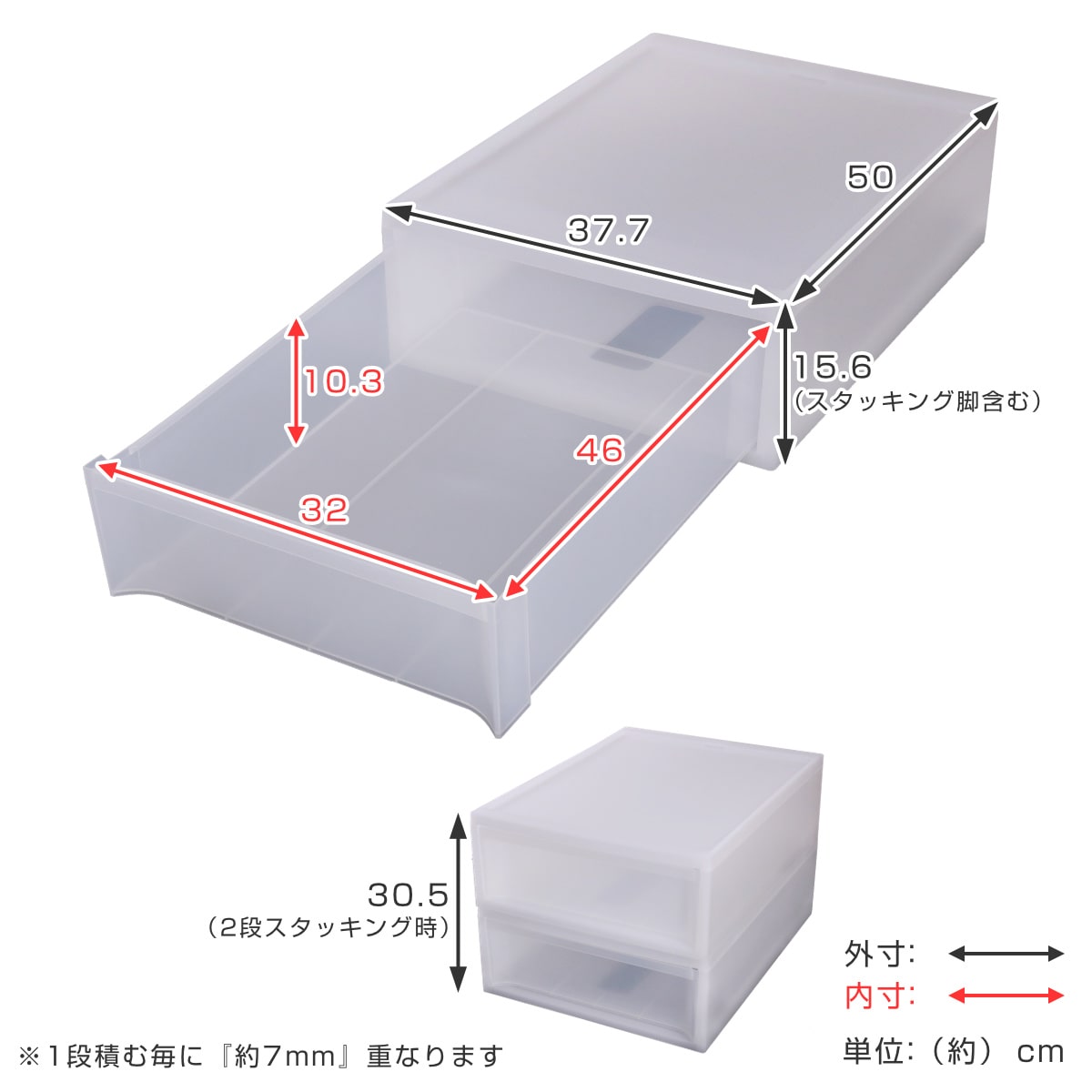 | サイズ | 約 幅37.7×奥行50×高さ15.6(cm) 引出有効内寸:約 幅32×奥行46×高さ10.3(cm) |