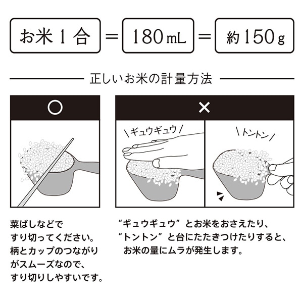 ●お米のプロと開発した、すくいやすい計量カップです。