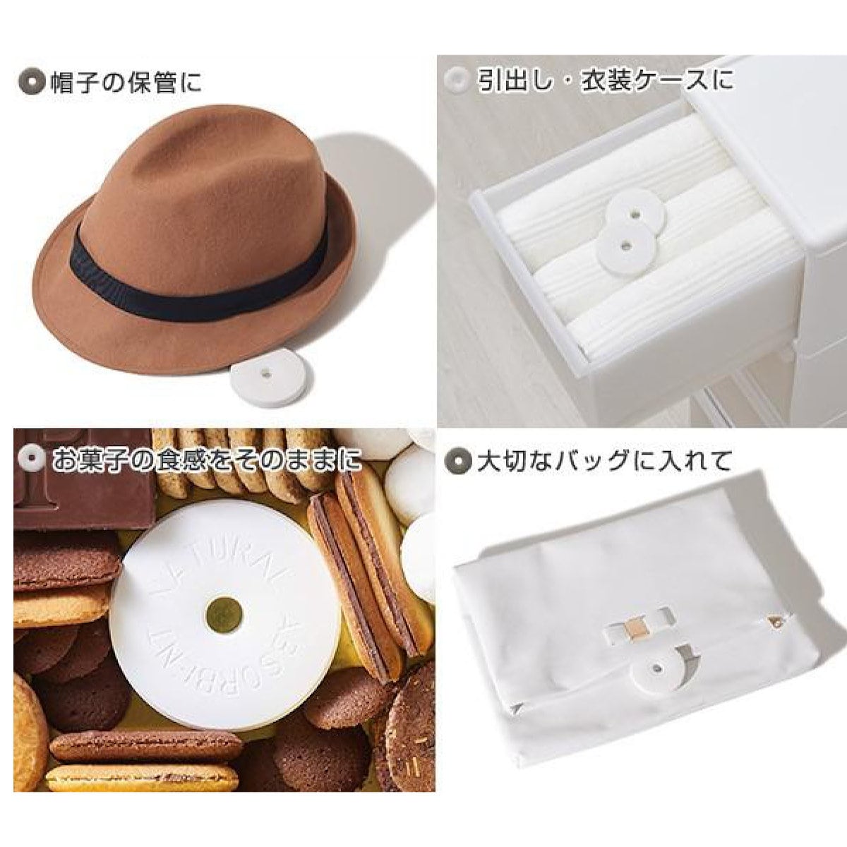 調味料や茶葉、シリアル、おかしなどキッチン周りはもちろん、クローゼットの引き出しや帽子の中など様々な場所で活躍します。