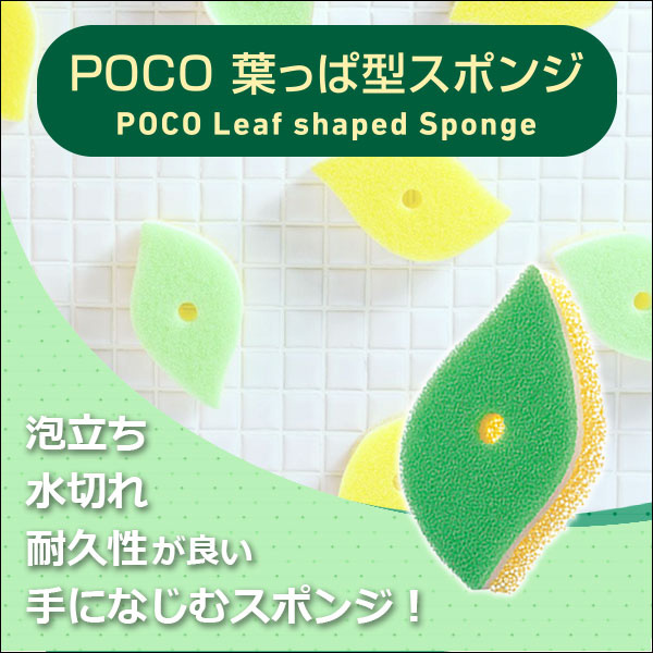 ●葉っぱの形が手になじむ耐久性のよいキッチンスポンジです。