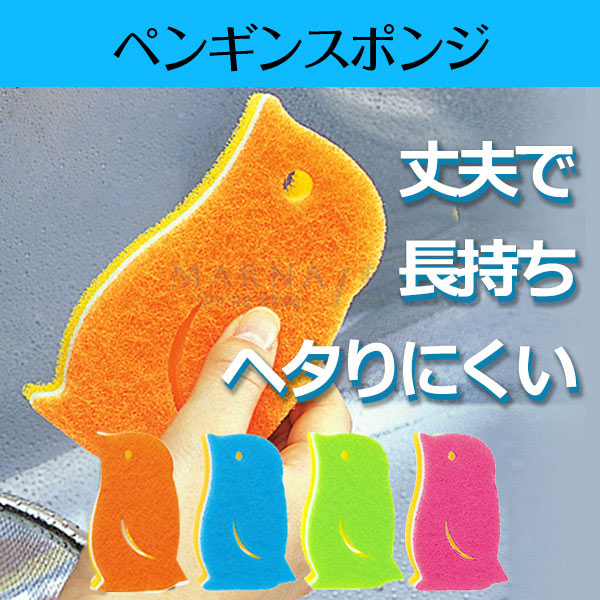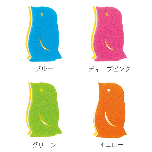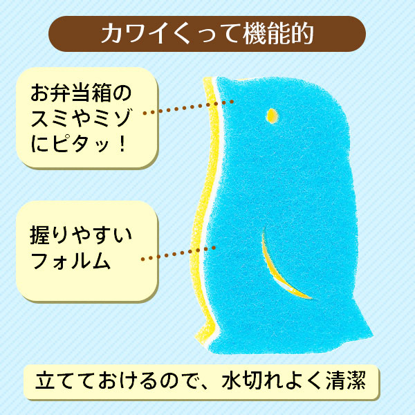 ●少量の洗剤もしっかりキープし、 スミの汚れもしっかり落とすペンギン型のスポンジです。