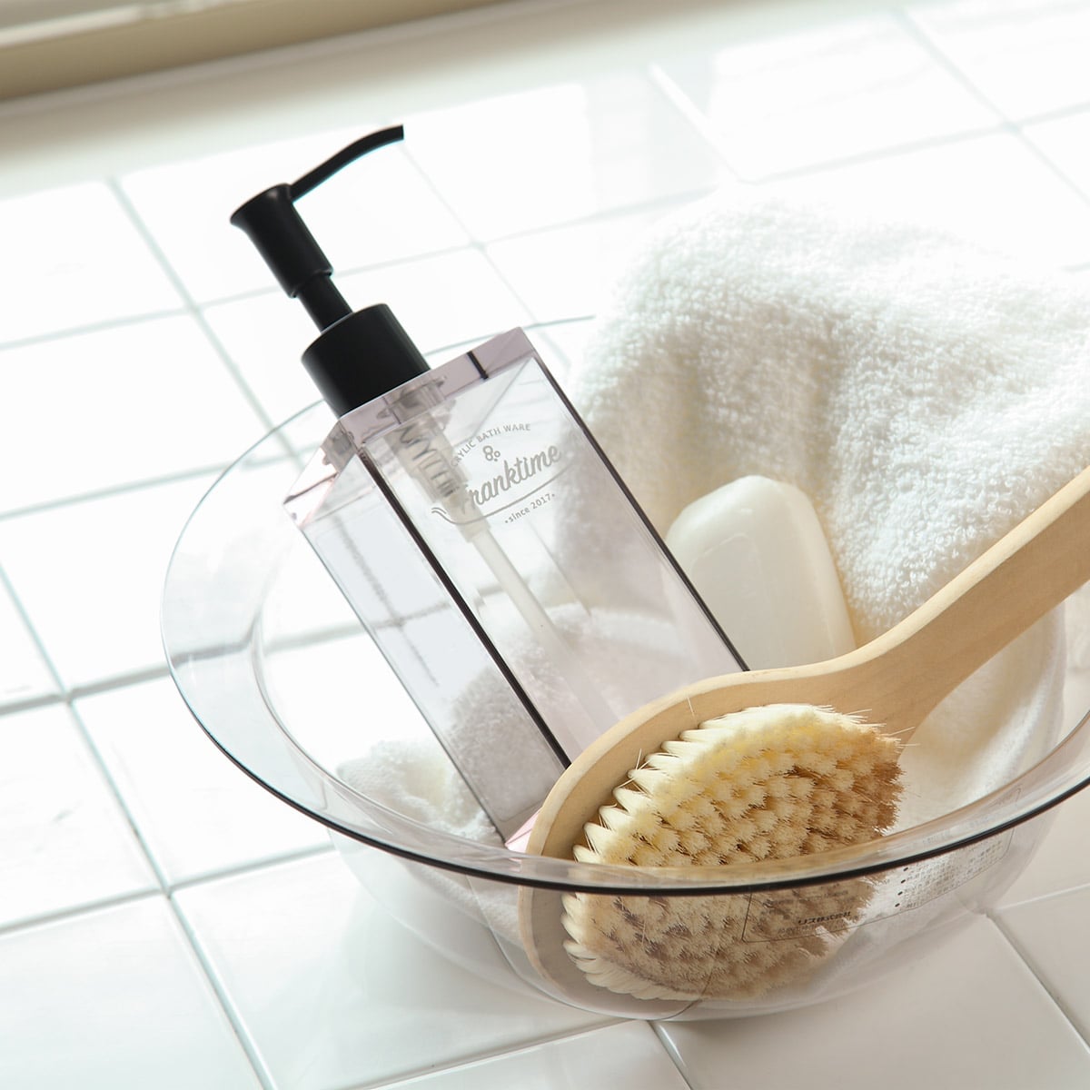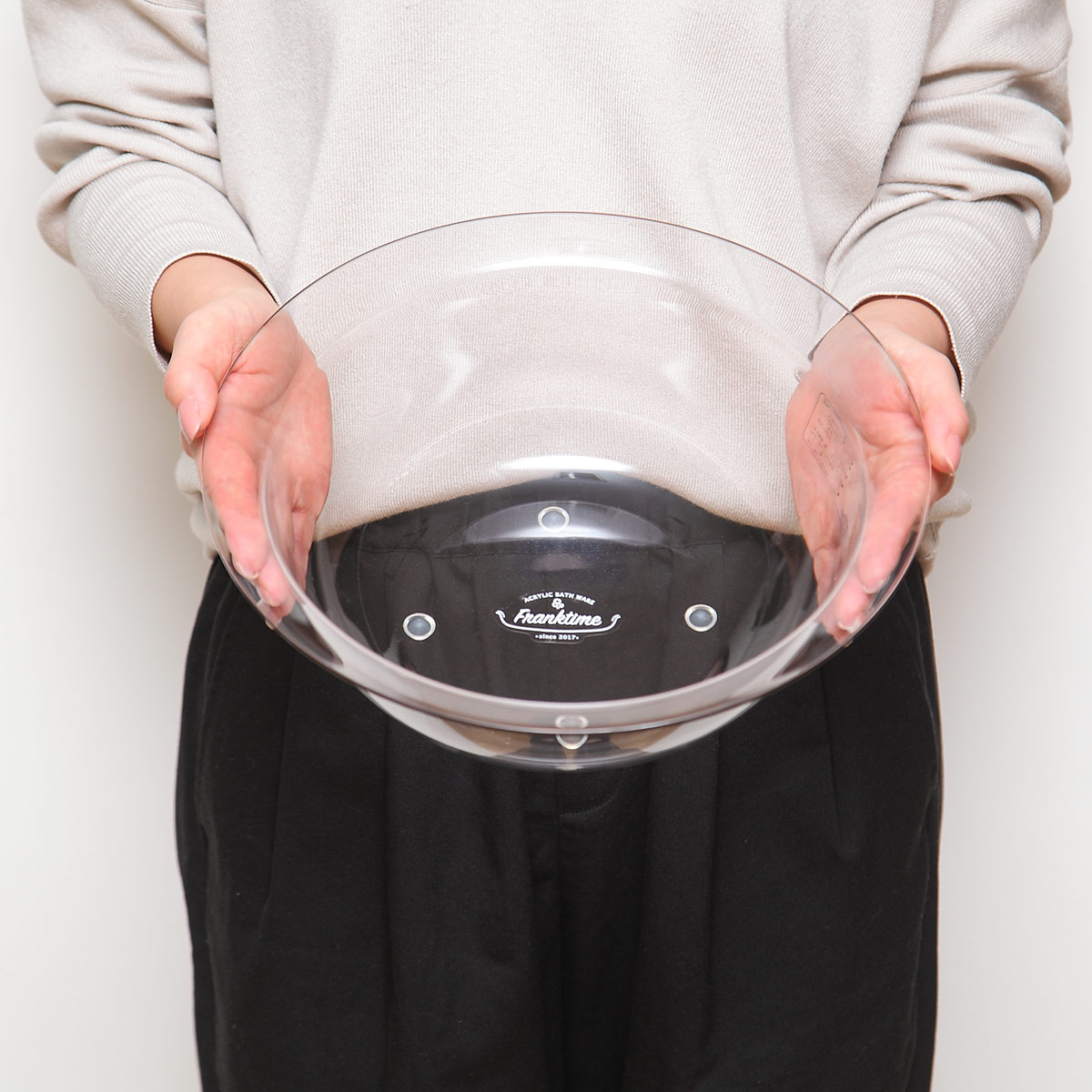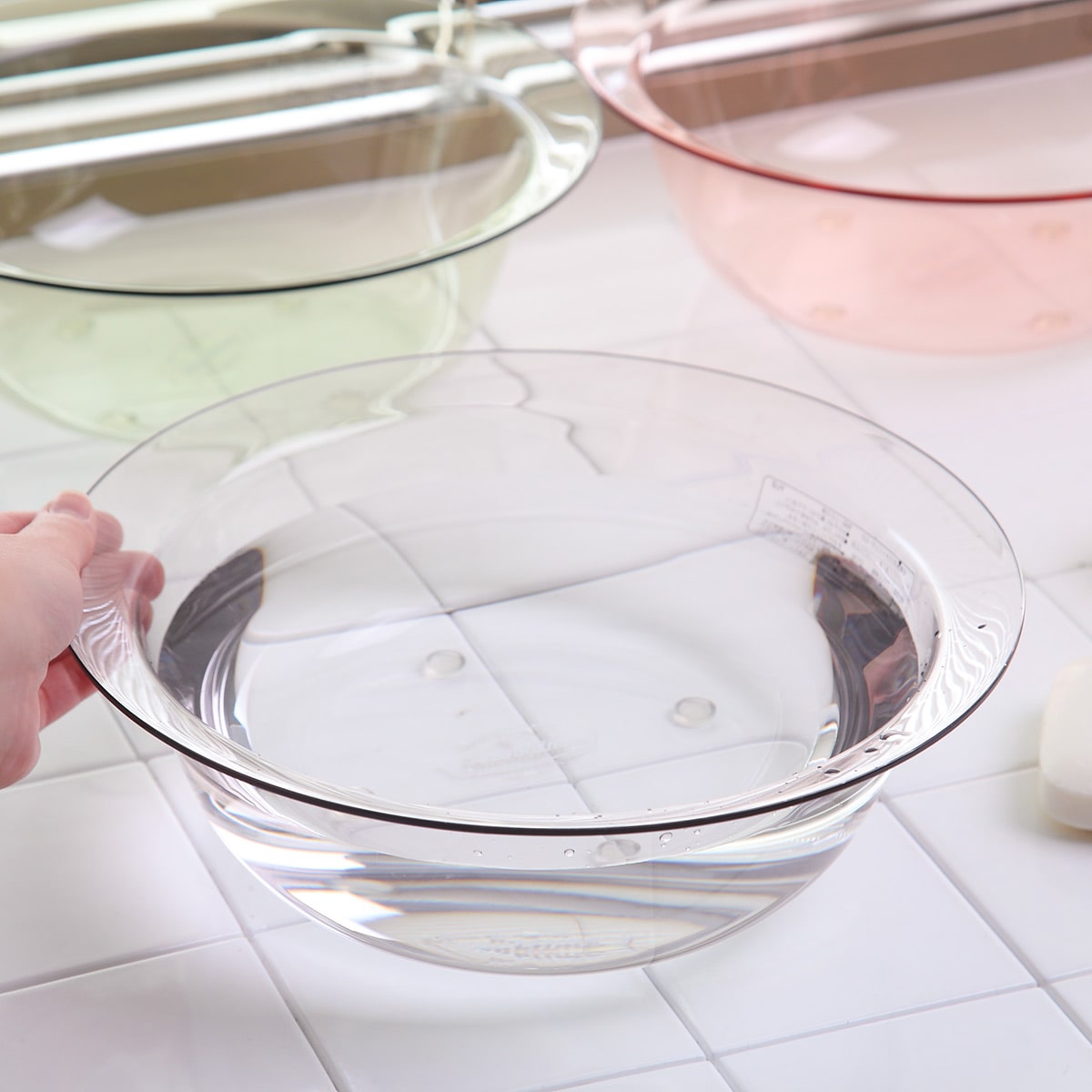 まるでガラスのような淡く透き通ったカラーが美しい湯おけです。クリアな透明感が魅力のアクリル製は、丈夫で割れにくく安心してお使いいただけます。