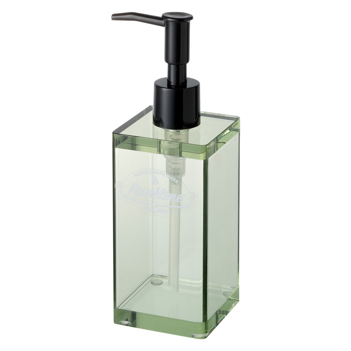 まるでガラスのような淡く透き通ったカラーが美しいディスペンサーです。ハンドソープや洗顔ソープに最適な容量330mlです。光沢のあるツヤ感にクリアな透明感が魅力のアクリル製は、丈夫で割れにくく安心してお使いいただけます。