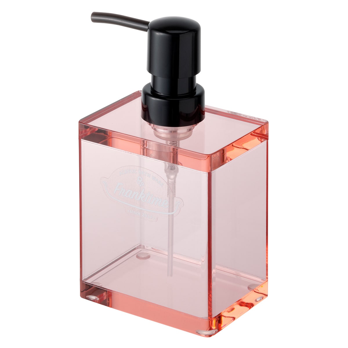 まるでガラスのような淡く透き通ったカラーが美しいディスペンサーです。泡で出てくるタイプのハンドソープや洗顔ソープに最適です。光沢のあるツヤ感にクリアな透明感が魅力のアクリル製は、丈夫で割れにくく安心してお使いいただけます。