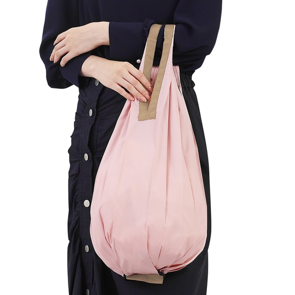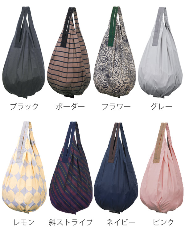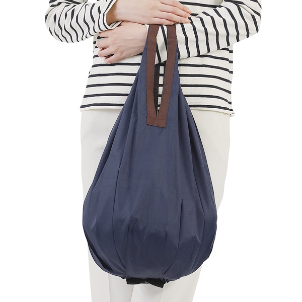 袋口がすぼまり中身が見られにくい「しずく」形状です。袋口が大きいのでケーキ箱なども入ります。普通の袋では入れにくいネギやフランスパン等の長細い物も安定して入れられます。日常使いに最適のアイテムです。