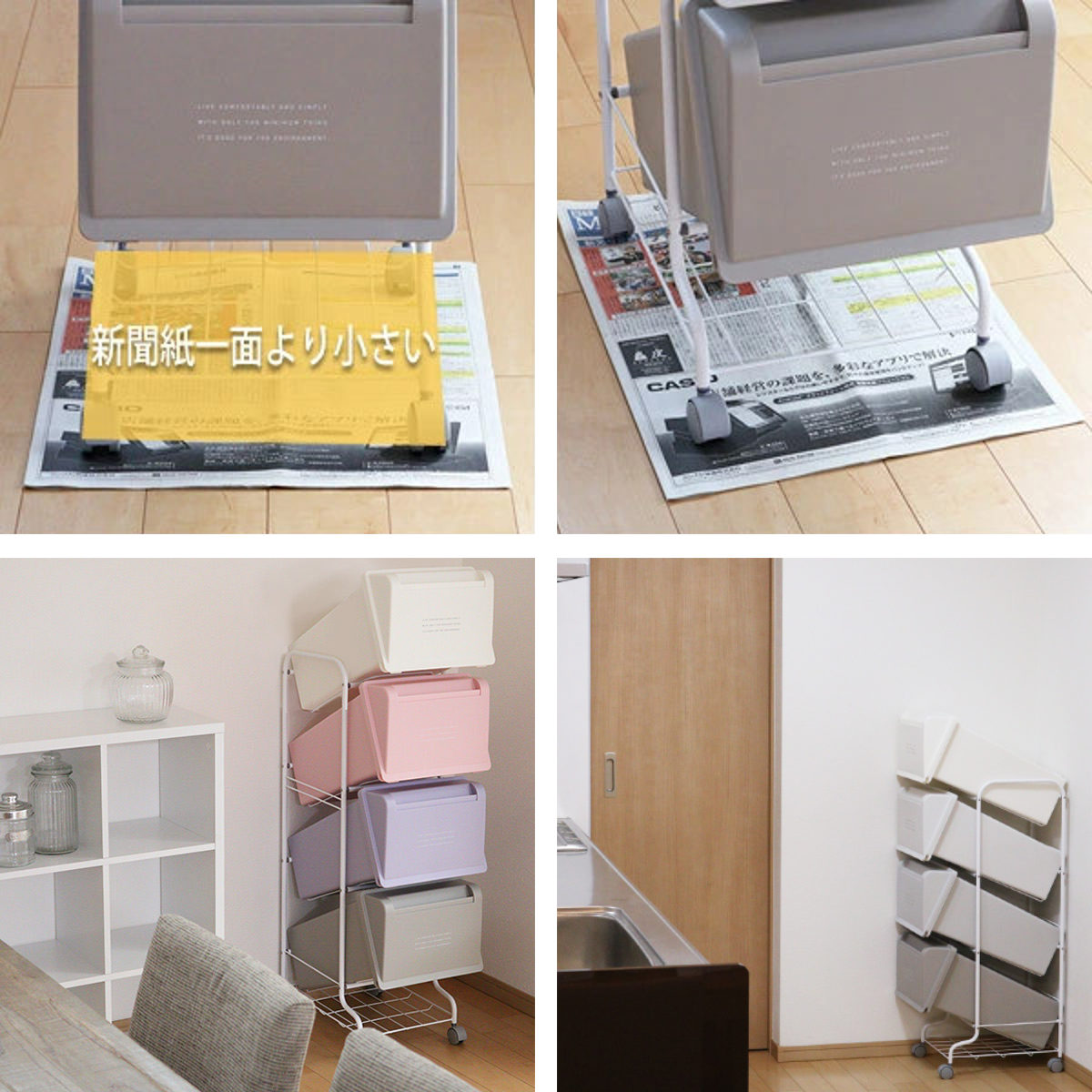 ゴミ箱を縦に並べることで省スペースでも使いやすい、ワゴン付きの分別式ゴミ箱です。ワゴン付きなので移動がしやすく、それぞれカラーの違う4色のゴミ箱がセットになっているので、ゴミの分別の目安にもなります。
